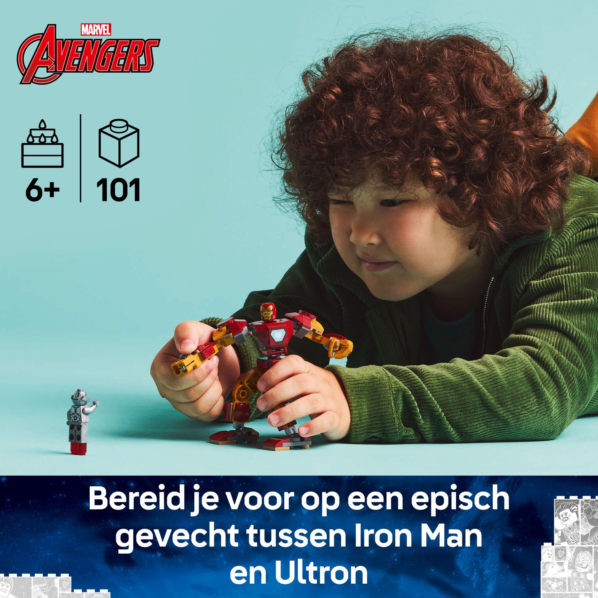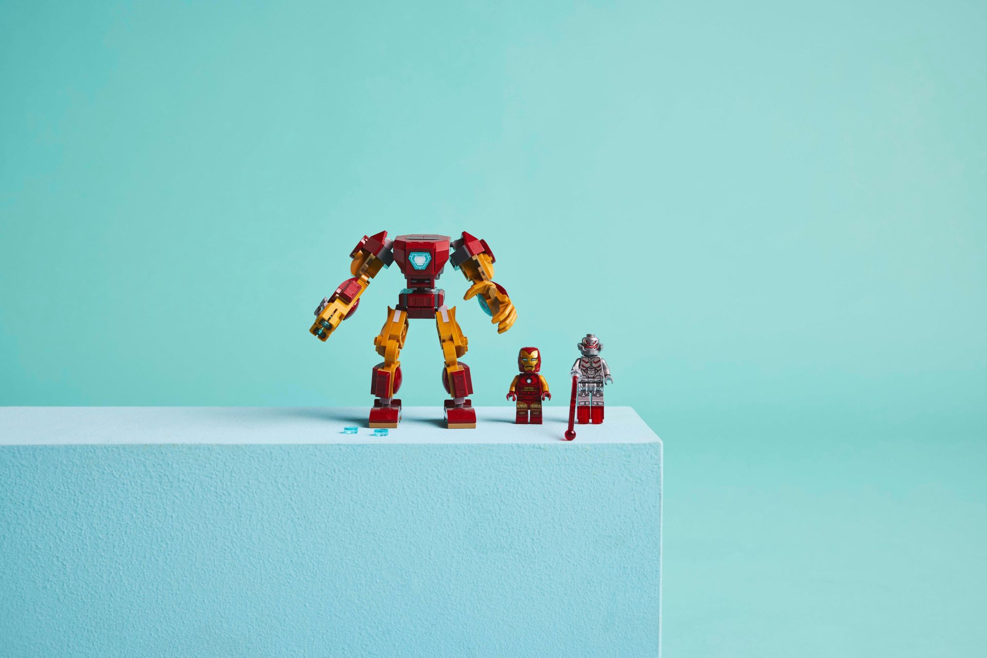 - LEGO Marvel minifiguren – de set bevat 2 minifiguren van Marvel personages: Iron Man met een helm die open kan en een omkeerbaar hoofd met verschillende uitdrukkingen, en Ultron met een laserstraalelement