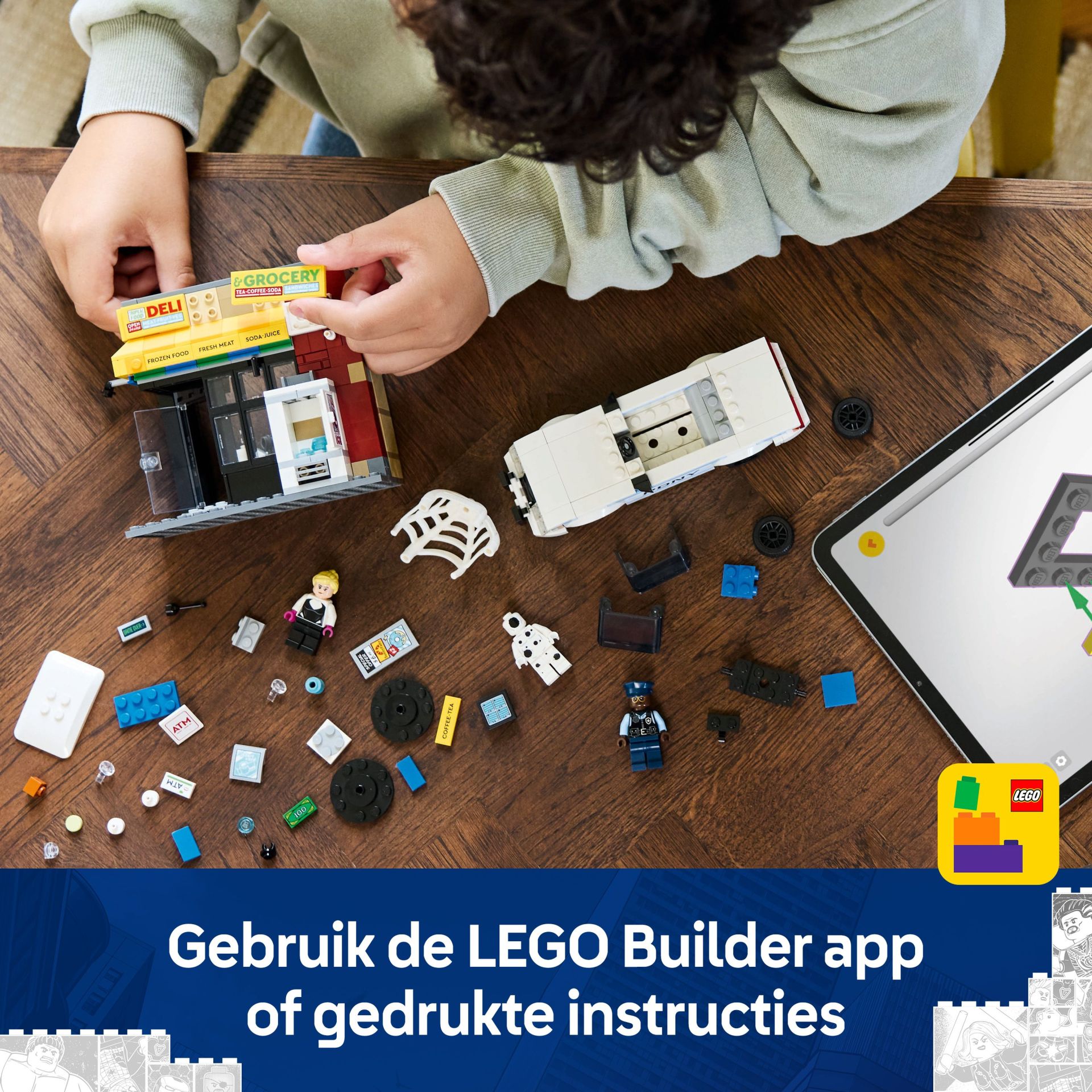 - Superheldenspeelset om te bouwen en mee te spelen – dankzij de muur met explosiefunctie van de supermarkt kan de geldautomaat worden gestolen door de Spot voor eindeloze fantasierijke avonturen