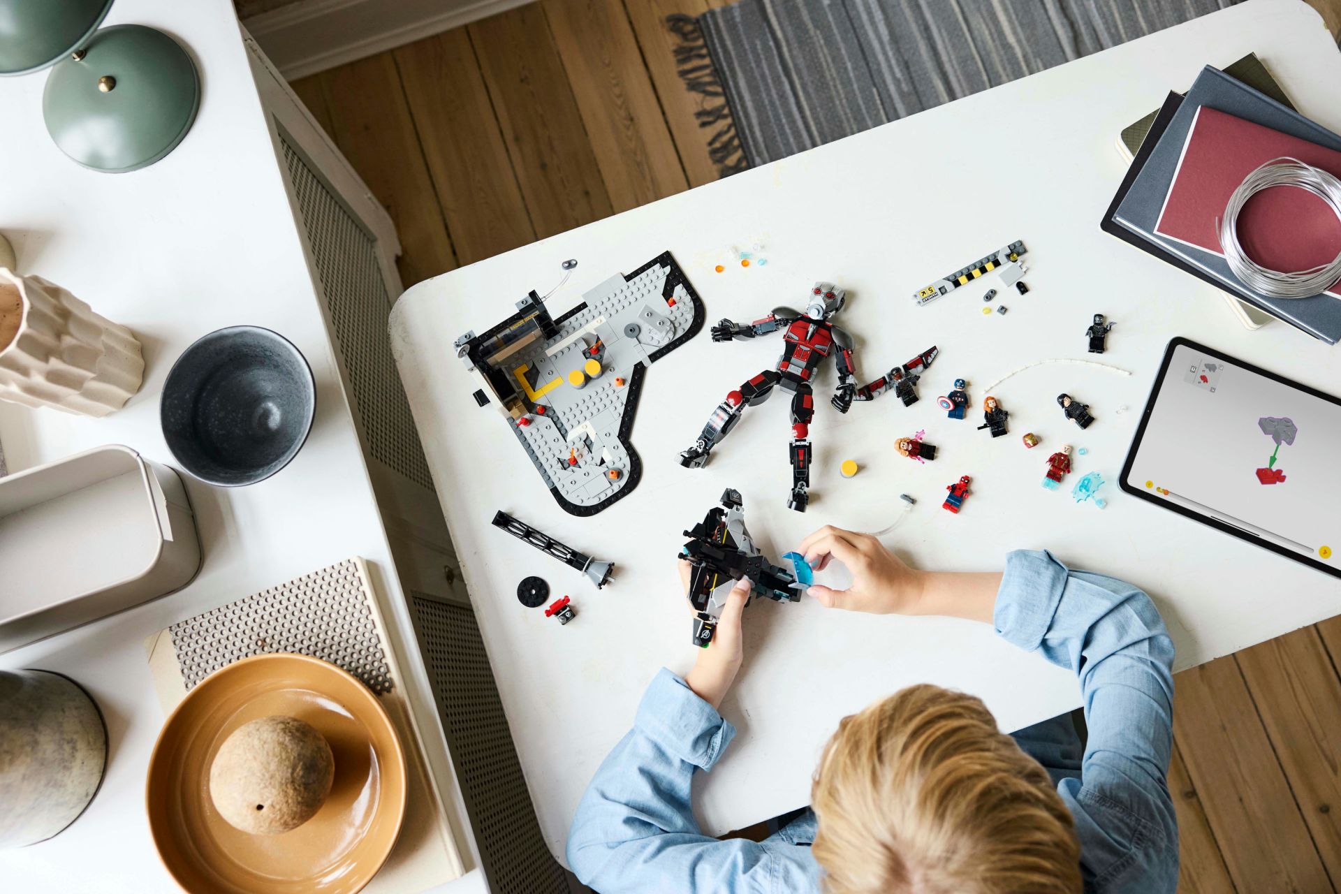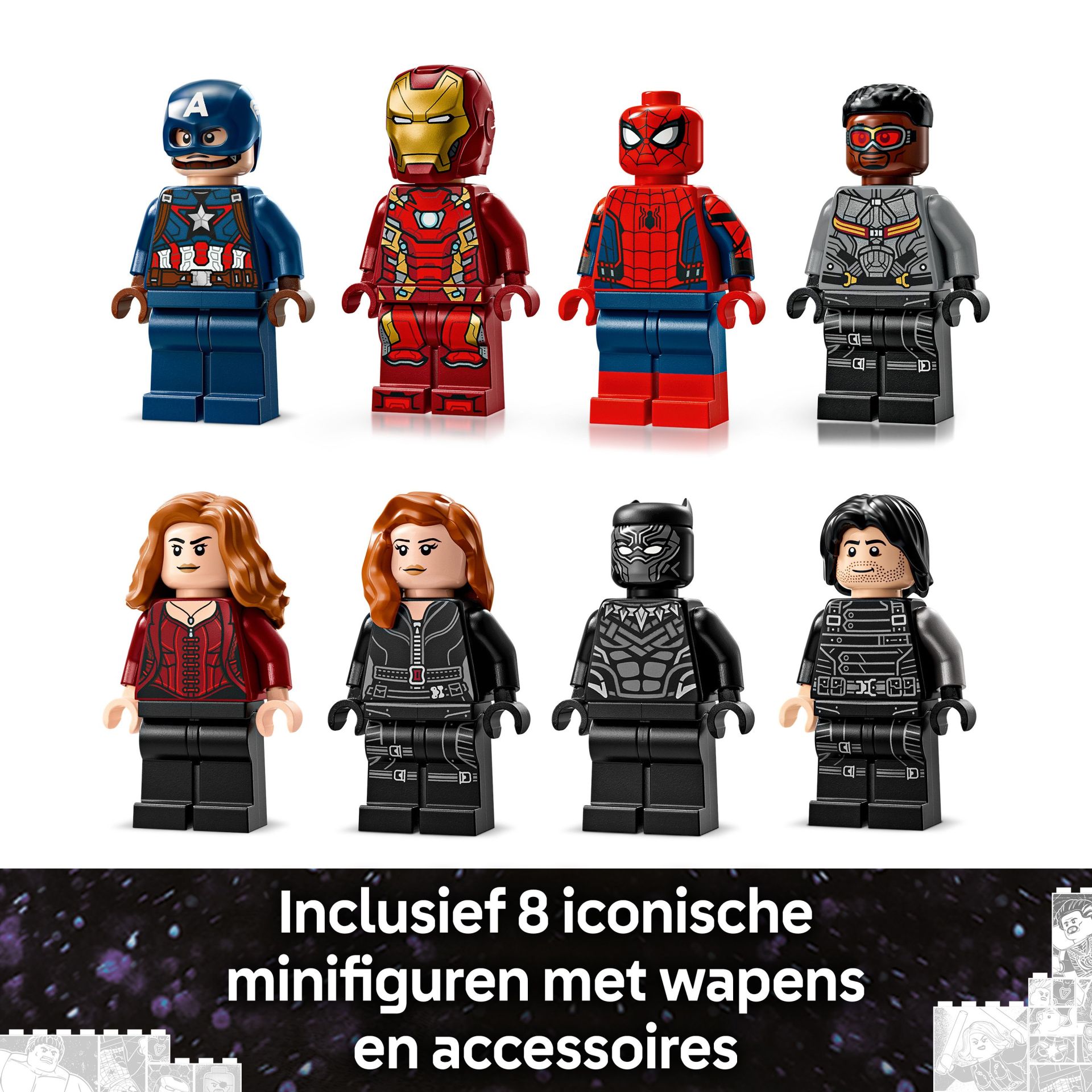 - LEGO Marvel figuren – inclusief een grote, volledig verstelbare Ant-Man LEGO figuur en 8 minifiguren: Captain America, Winter Soldier, Wanda, Falcon, Iron Man, Spider-Man, Black Widow en Black Panther