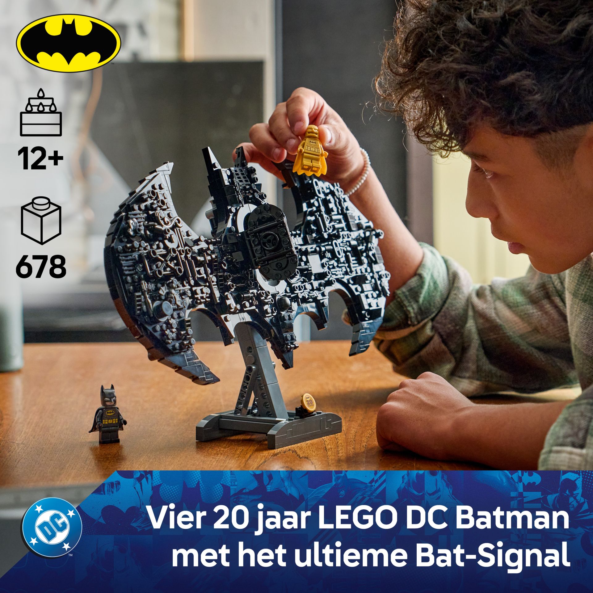 BOUWBAAR BATMAN SPEELGOED VOOR KINDEREN – vier de 20ste verjaardag van LEGO DC Batman met het Batman logo, een verzamelmodel met superheldenthema om te bouwen en neer te zetten of op te hangen als kinderkamer decoratie