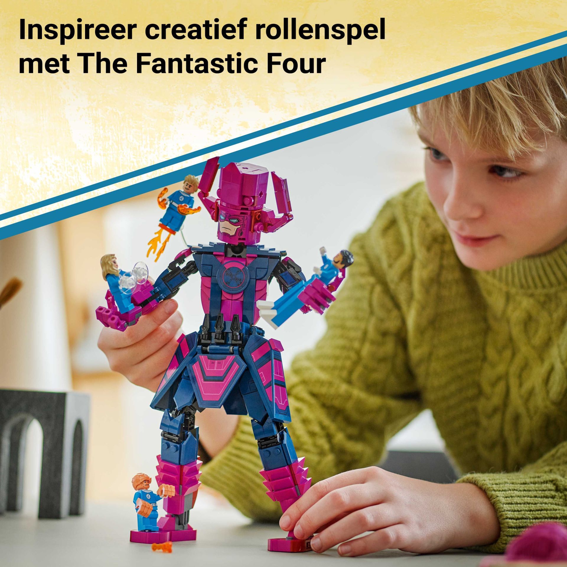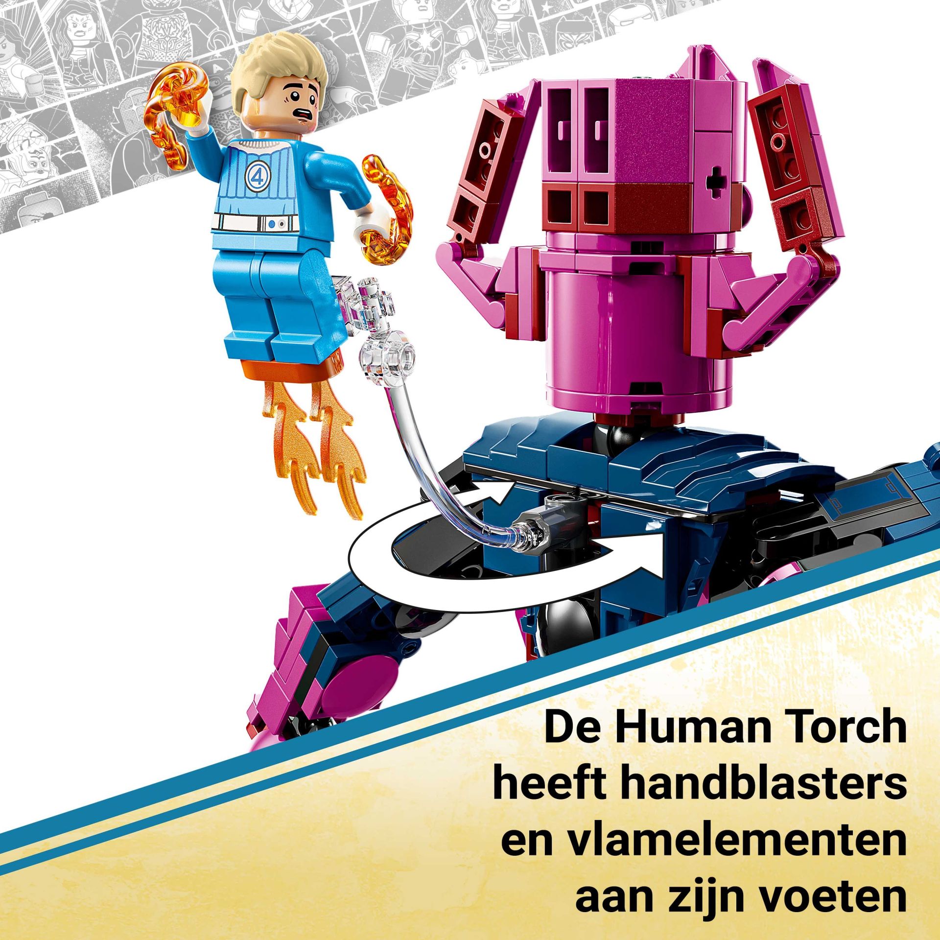 Grote LEGO Marvel figuur – het volledig verstelbare model van de schurk uit de film, Galactus, is in allerlei houdingen te zetten voor eindeloze dynamische actie waarin kinderen confrontaties naspelen met de minifiguren van de superhelden