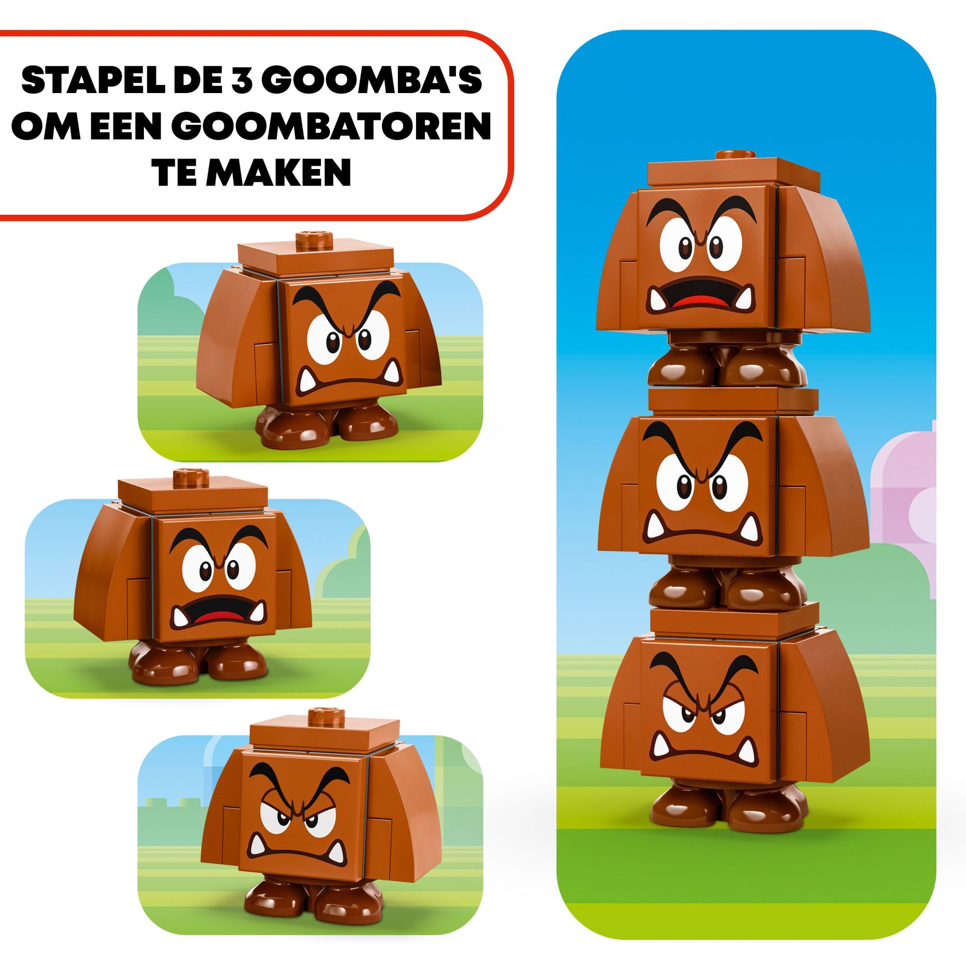 3 LEGO® Super Mario™ Goomba speelgoedfiguren – de Goomba's kunnen op elkaar worden gestapeld