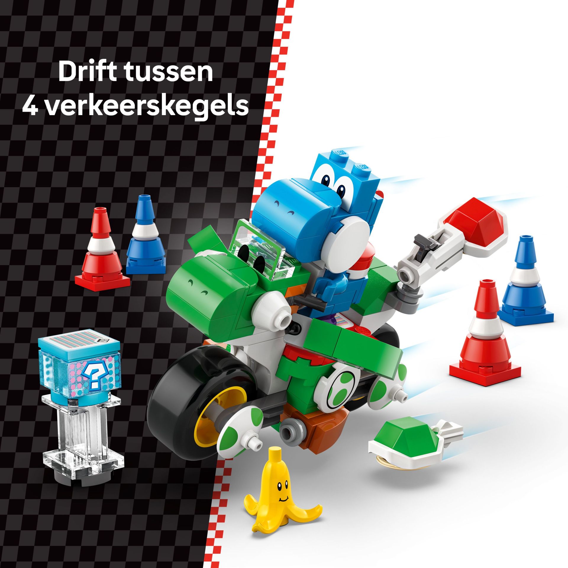 - Nintendo cadeau voor kinderen – rijd en ontwijk met een bouwbaar model van de Yoshi-crosser met deze LEGO Super Mario: Mario Kart avontuurlijke speelset