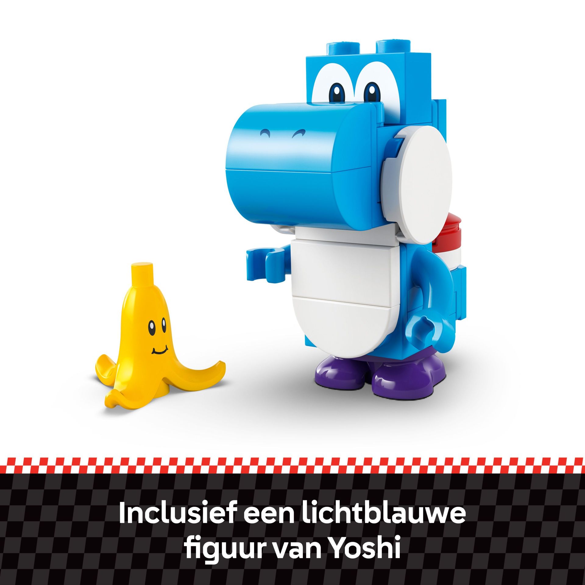 Bereid je voor op spannende actie, rijden en ontwijken met deze LEGO Super Mario: Mario Kart – Yoshi-crosser avontuurlijke speelset (72031). Dit bouwpakket voor kinderen bevat een bouwbaar model van de Yoshi-crosser en, voor het eerst in een LEGO Super Mario set, een lichtblauwe Yoshi speelgoed figuur. Stuur tussen 4 verkeerskegels door, lanceer schilden en ontwijk de banaan.