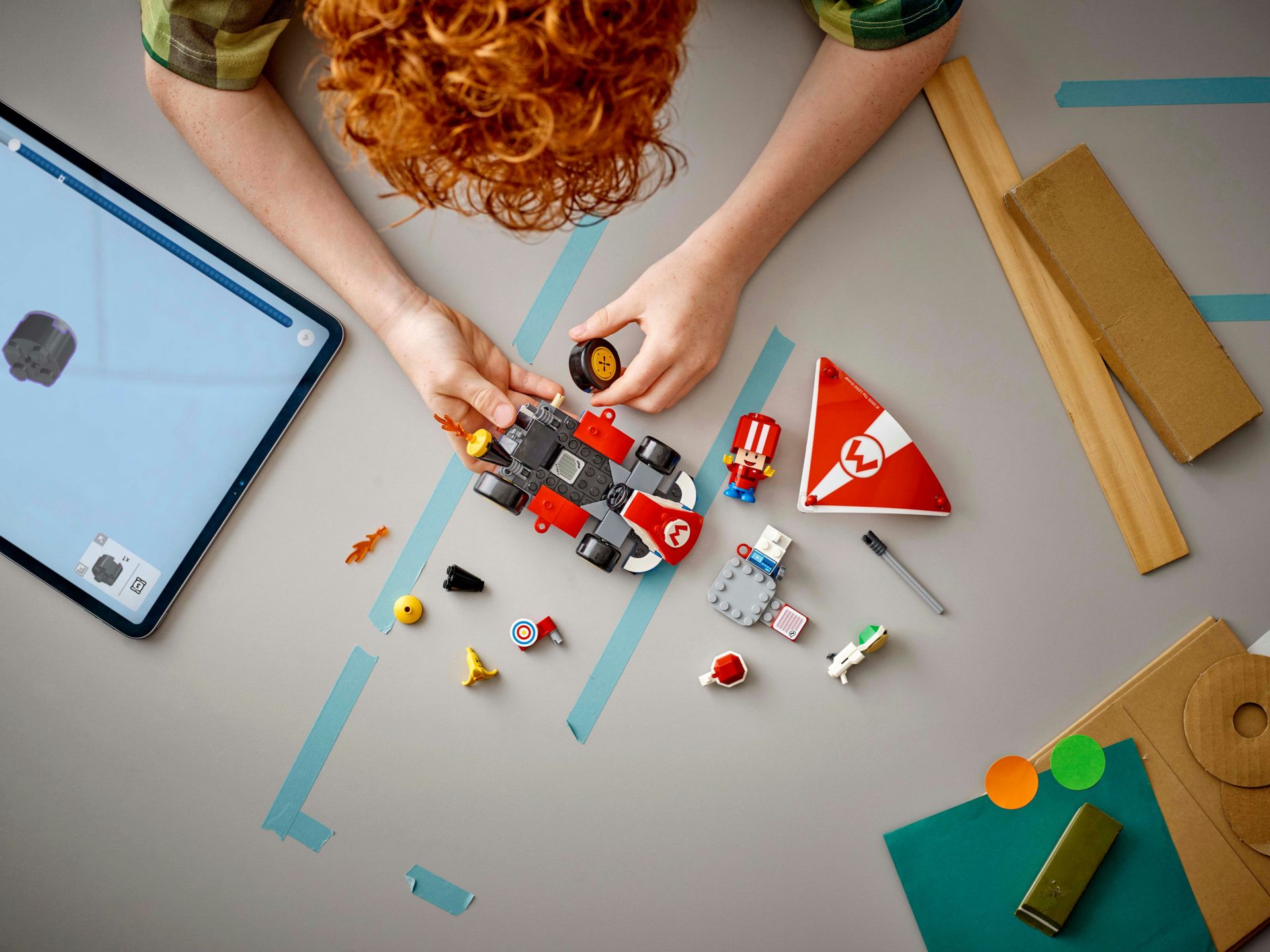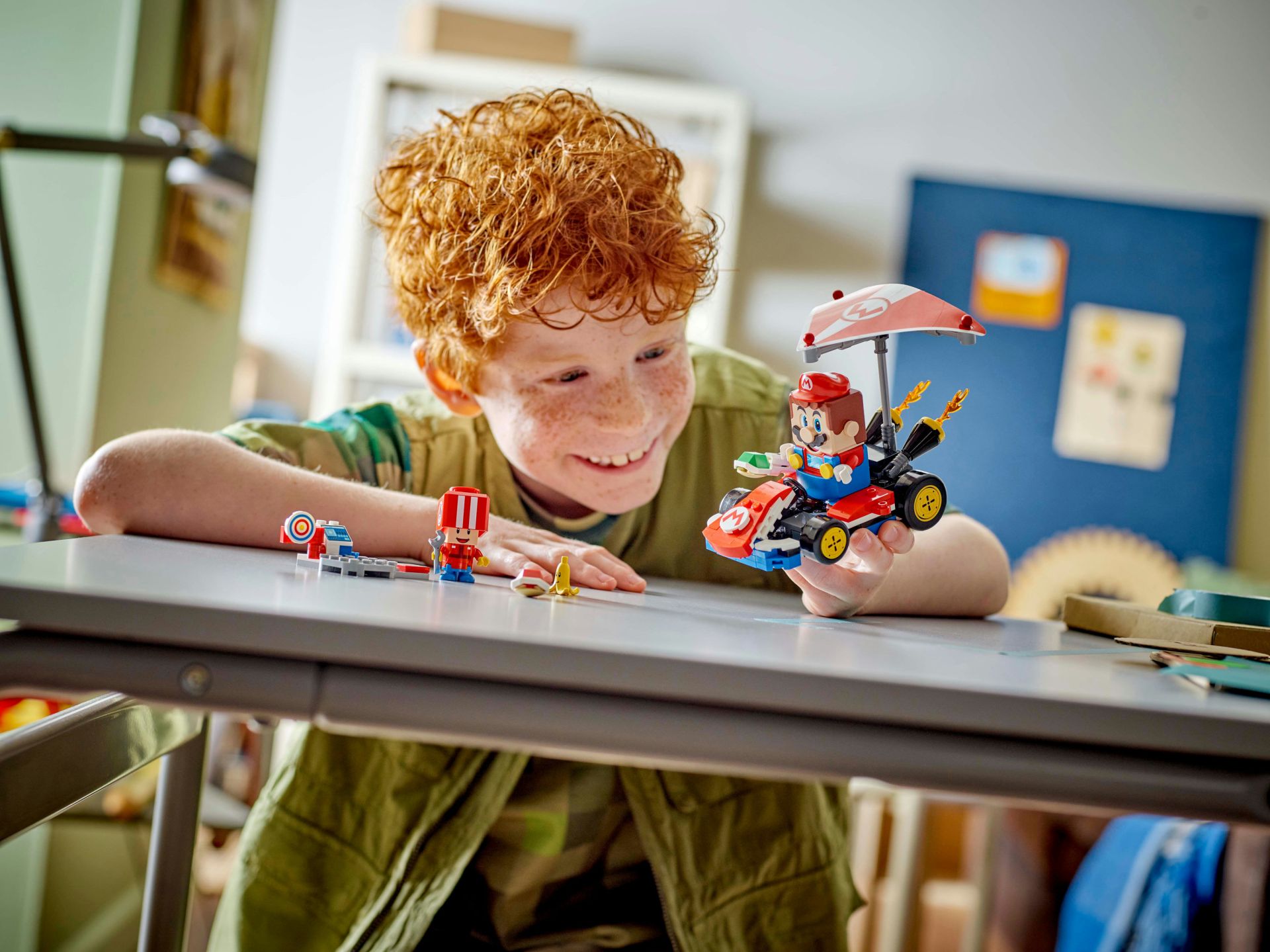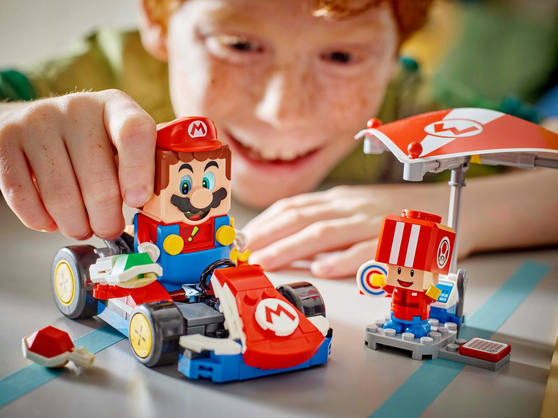 - LEGO Super Mario autospeelgoedset – ga samen met Toad (pitstop) racen, driften en zweven met een bouwbaar model van de standaardkart uit Mario Kart, plus een werkplaats