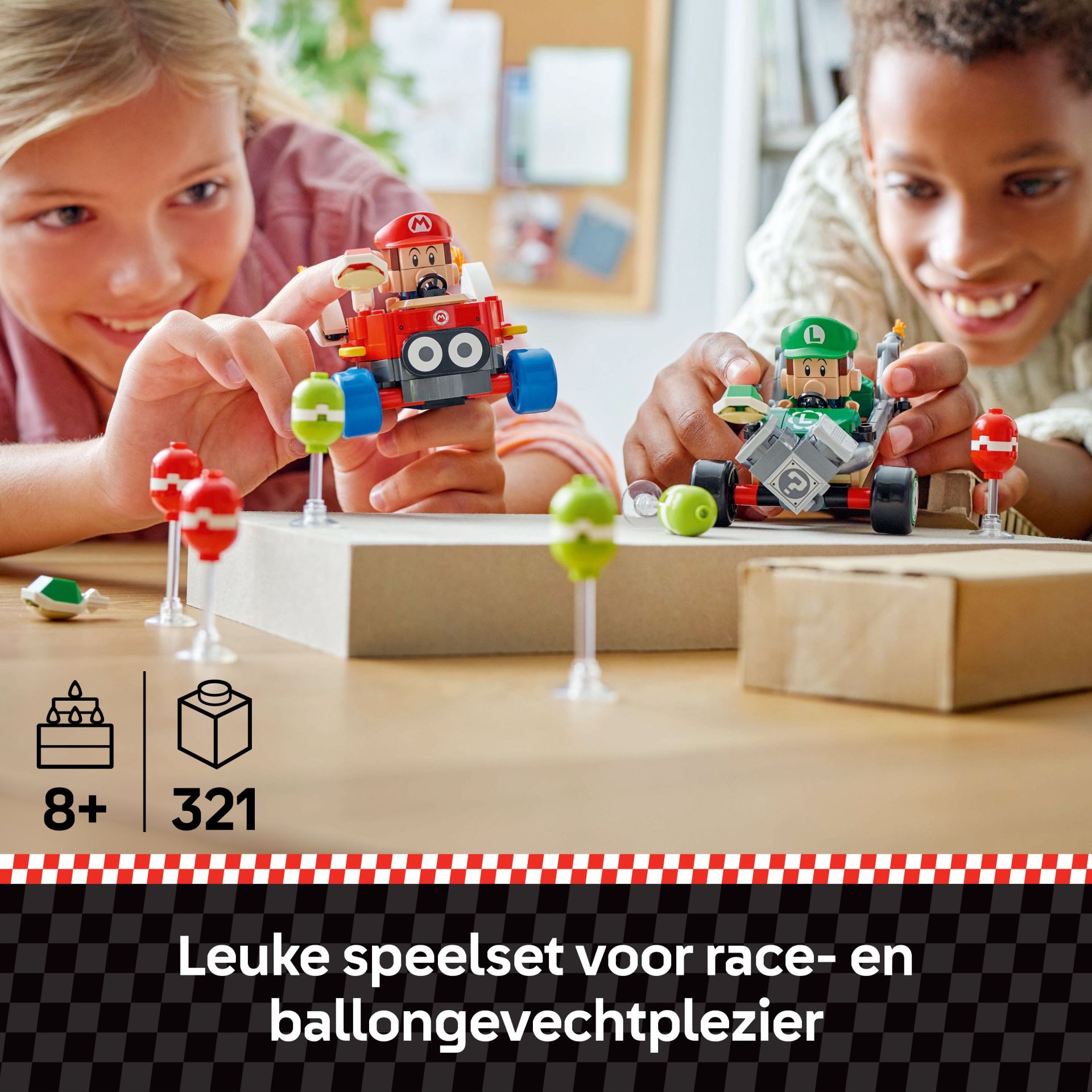 - Nintendo game bouwpakket voor kinderen – bekijk het LEGO Super Mario: Mario Kart assortiment (apart verkrijgbaar) voor nog meer voertuigen en personages om tegen te racen en verhalen mee te bedenken