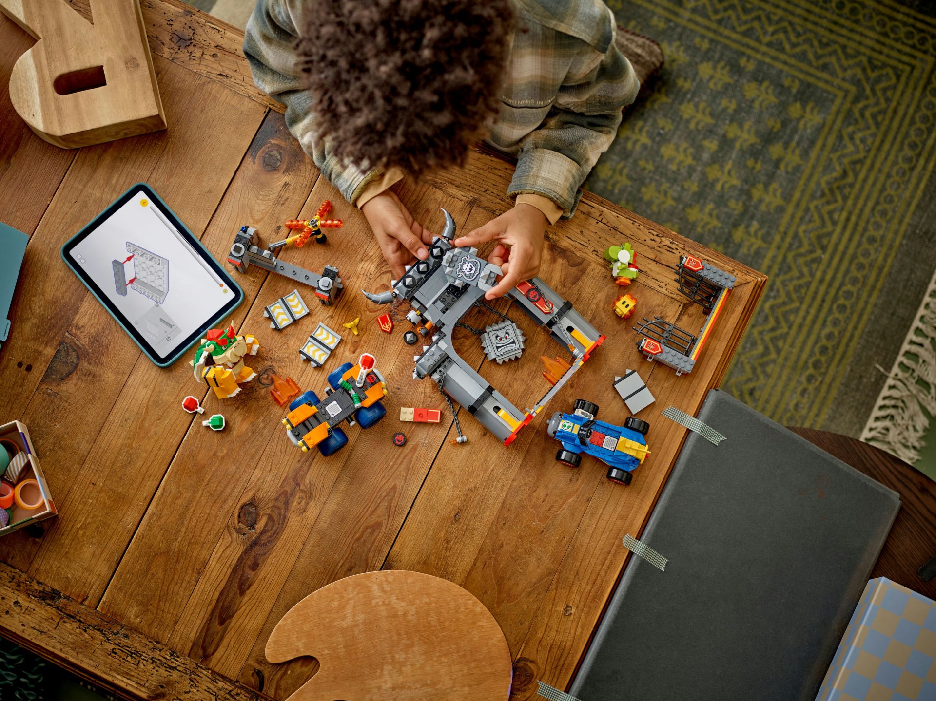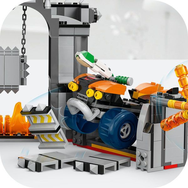 LEGO® Super Mario™ racebaanset – lanceer schilden vanuit de standaardquad en Mach 8-kart, race rond het kasteel (of door de uitklapbare muren!), ontwijk de draaiende vuurbalk en meer