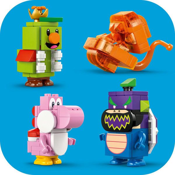 5 Nintendo® personages voor rollenspellen – deze set om mee te spelen en neer te zetten bevat een grote, bouwbare Kasteel-Bowser figuur plus een roze Yoshi, een Fiery Note Piranha, prins Florian en Wonder-Bowser Jr.