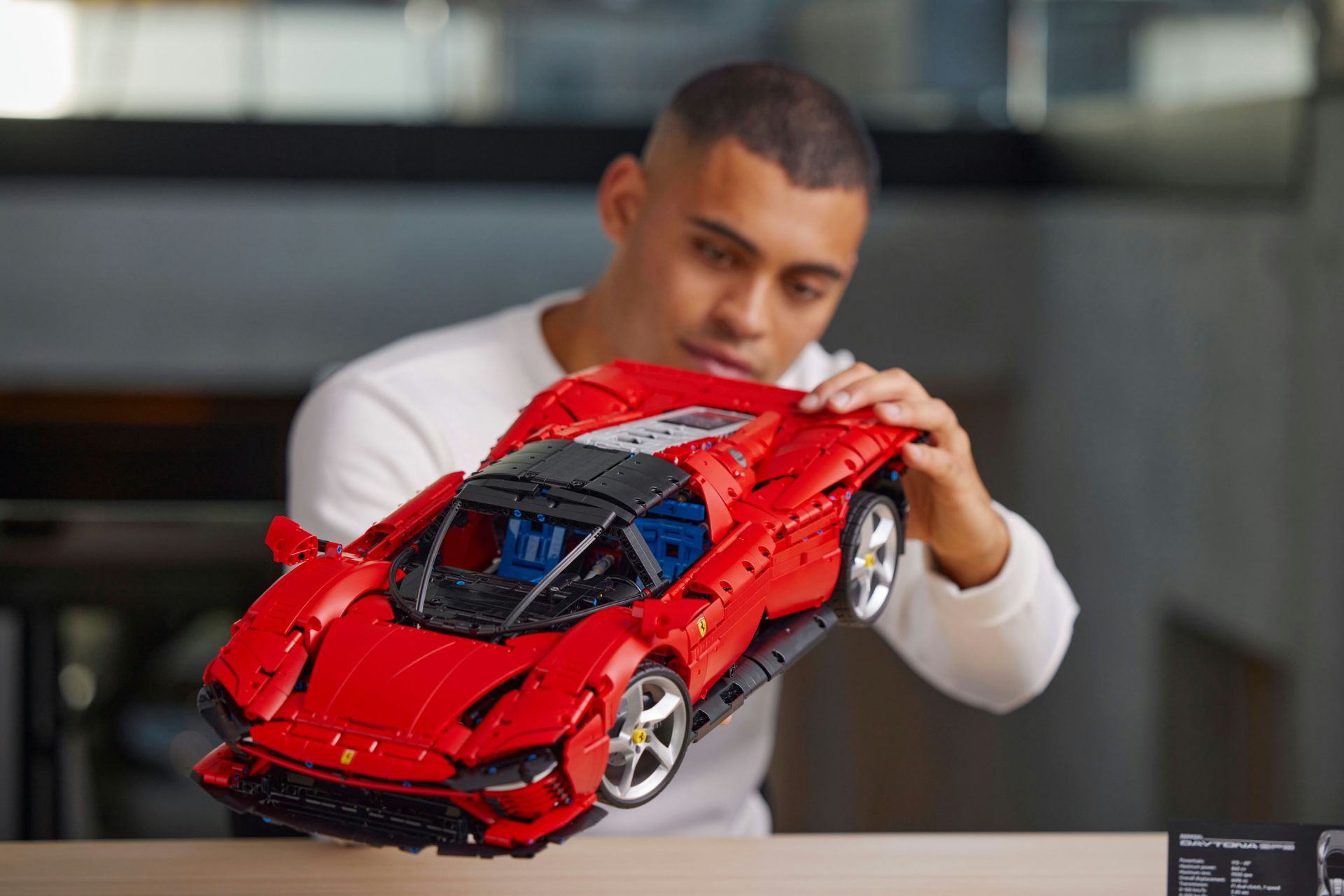 Een indrukwekkende creatie voor volwassen Ferrari fans in de LEGO® Technic Ultimate Car Concept serie. Neem wat tijd voor jezelf en bouw dit Ferrari Daytona SP3 model met zijn klassieke rode kleur en verchroomde velgen. Zet het daarna op een mooi plekje en bewonder de opvallende achterkant en ronde lijnen die dit schaalmodel (1:8) zo bijzonder maken.