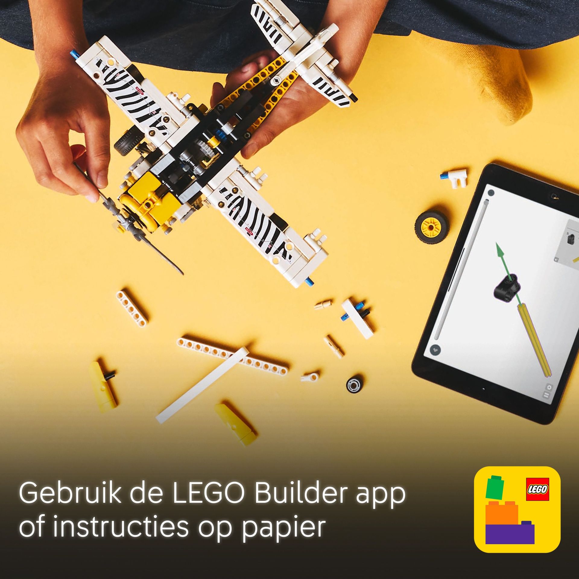 Speelgoedvliegtuig voor kinderen vanaf 8 jaar – bouw en ontdek een leuk LEGO® Technic Junglevliegtuig met draaibare propeller, verstelbare rolroeren en een 4-cilinder zuigermotor