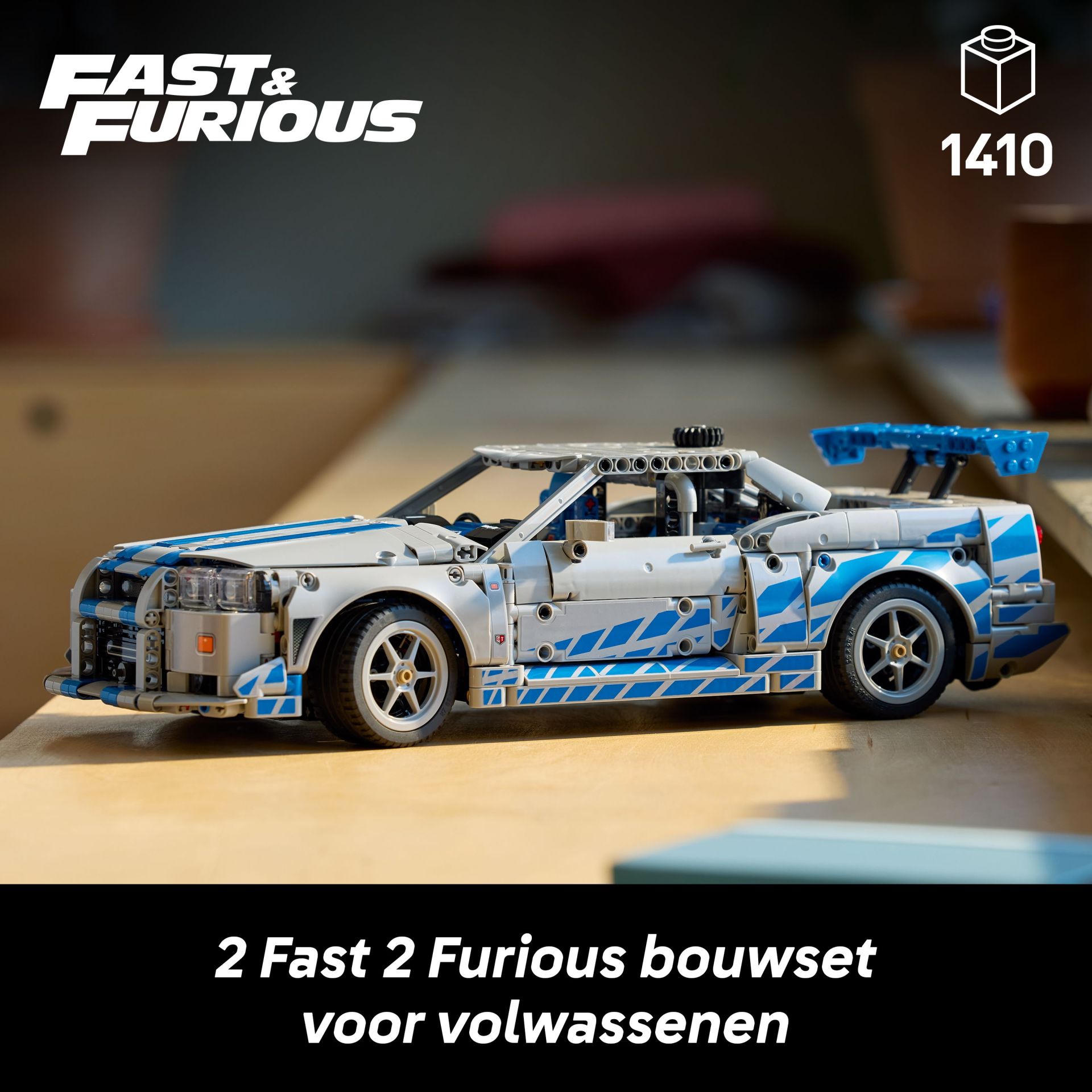 LEGO Fast & Furious auto bouwpakket voor volwassenen – bouw de LEGO Technic 2 Fast 2 Furious Nissan Skyline GT-R (R34) auto en gebruik vervolgens de driftfunctie om klassieke Fast & Furious films scènes na te spelen