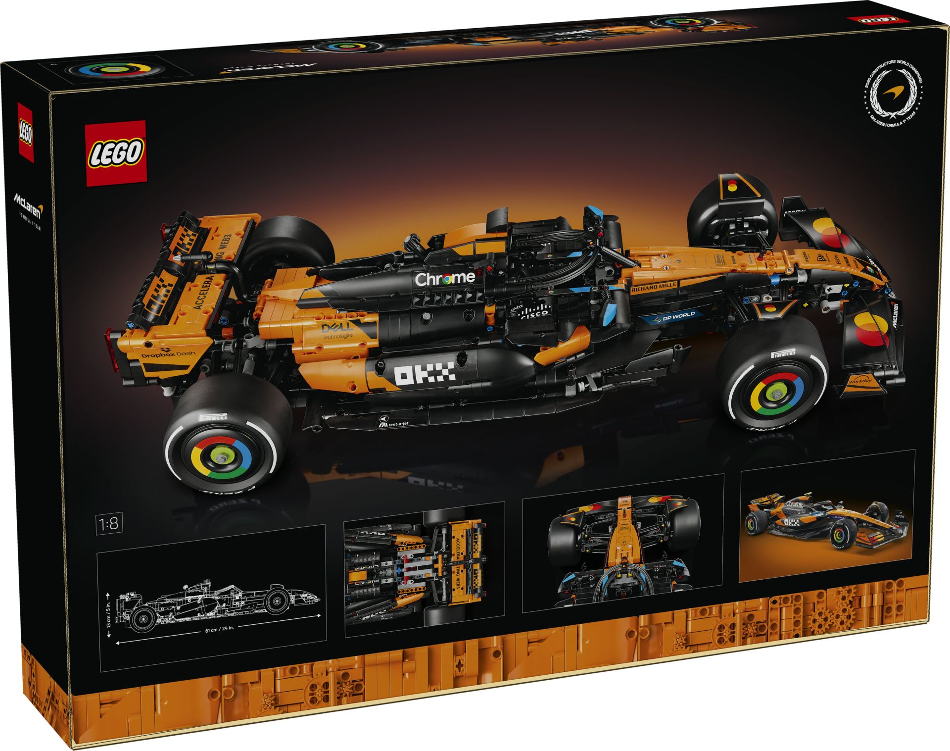 AFMETINGEN – de LEGO® F1® auto in deze 1675-delige set is ca. 13 cm hoog, 61 cm lang en 25 cm breed