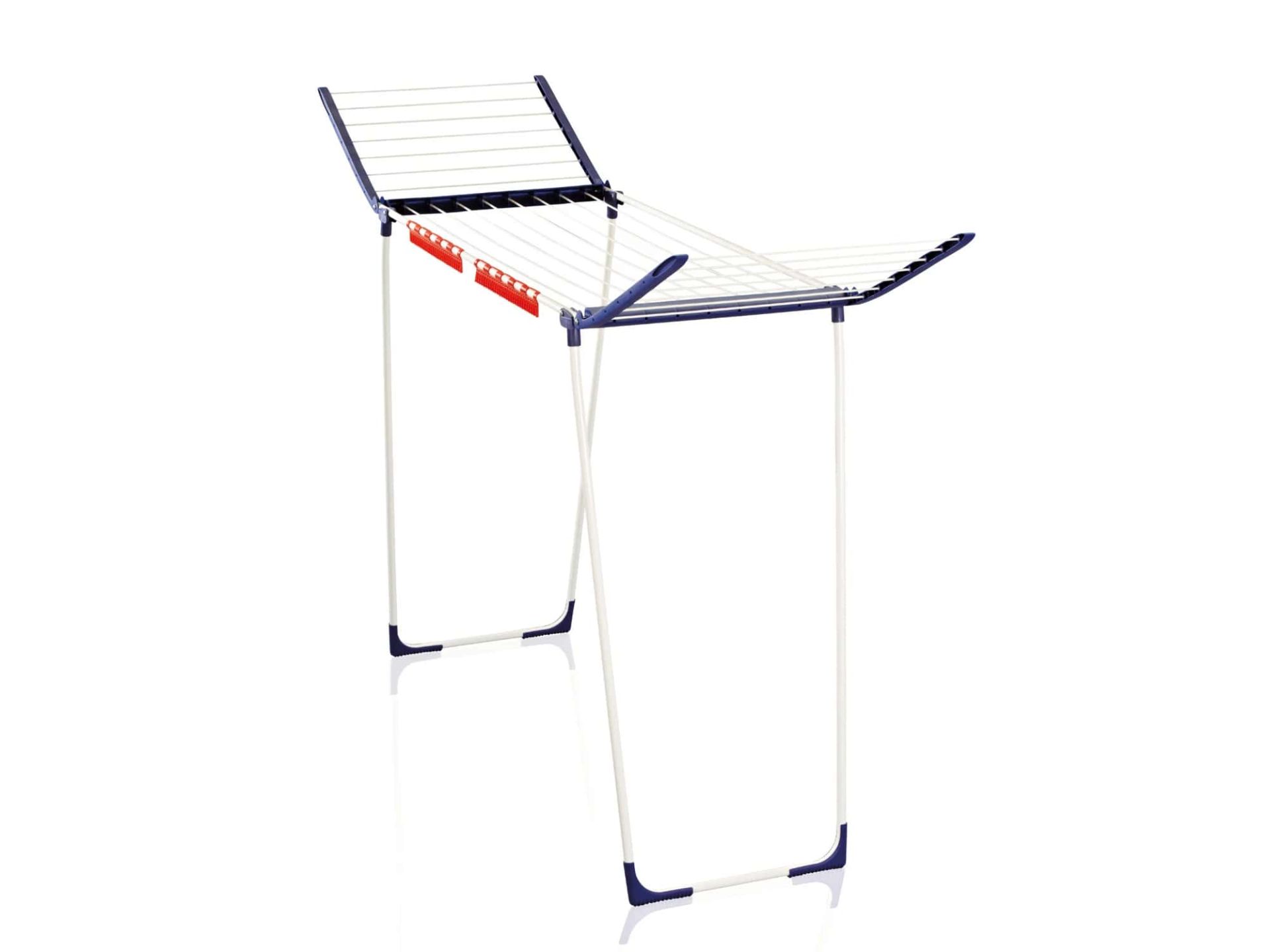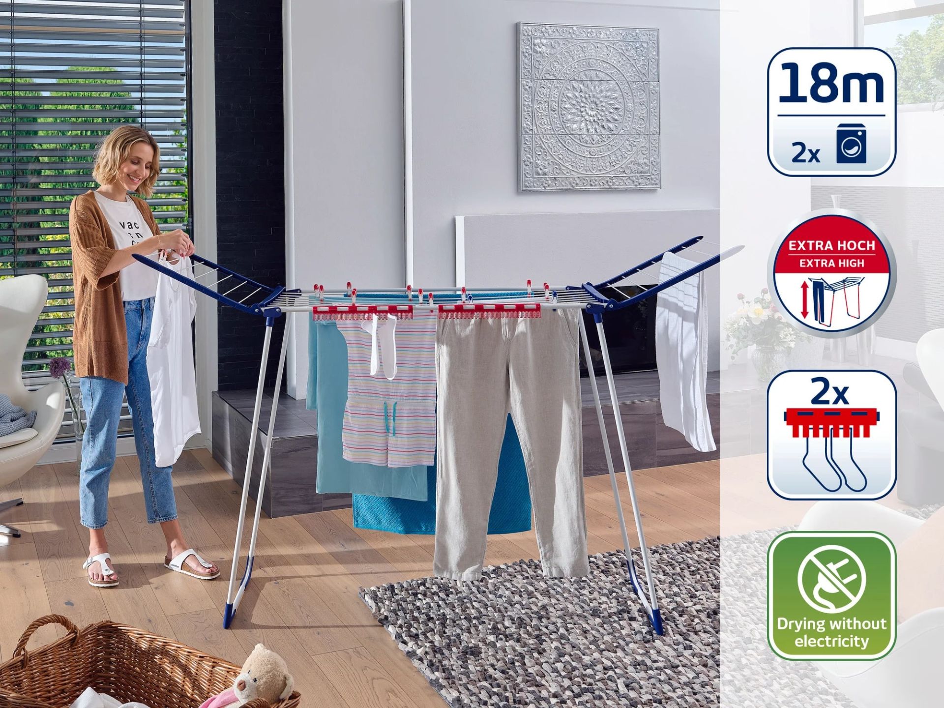 Leifheit Droogrek Pegasus 180 Solid Maxx - 18m - 55x196x108 cm - Klapvleugels - met 2 Houders voor Klein Wasgoed - Wit/Blauw