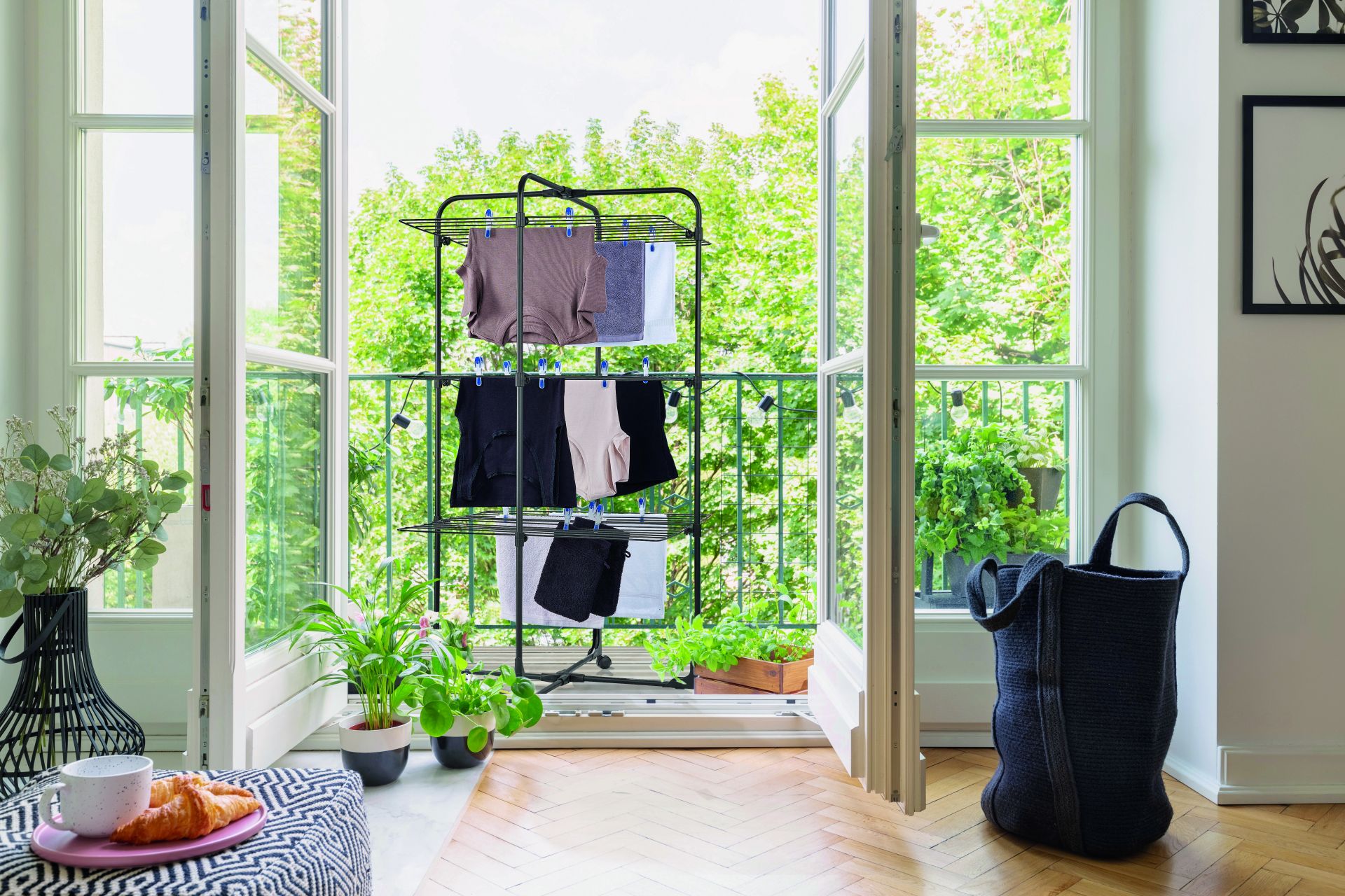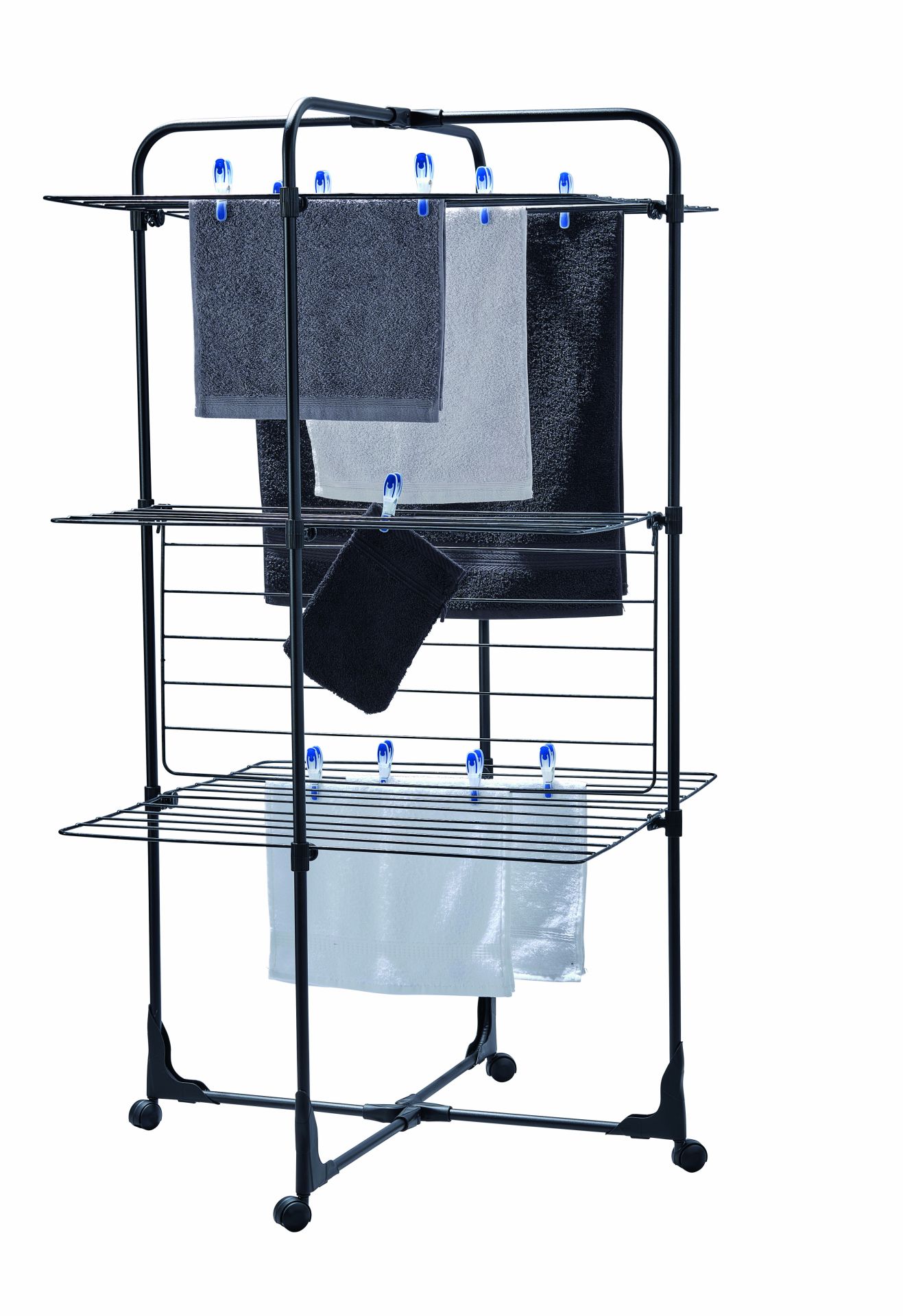 Leifheit Droogtoren Classic Tower 270 Black - 27m - 68x68x126 cm - 3 Niveaus - met Wieltjes
