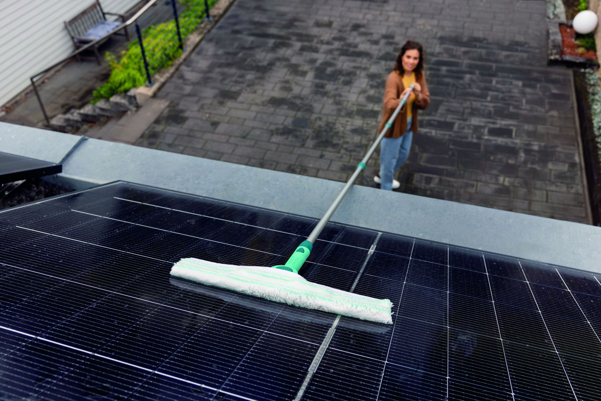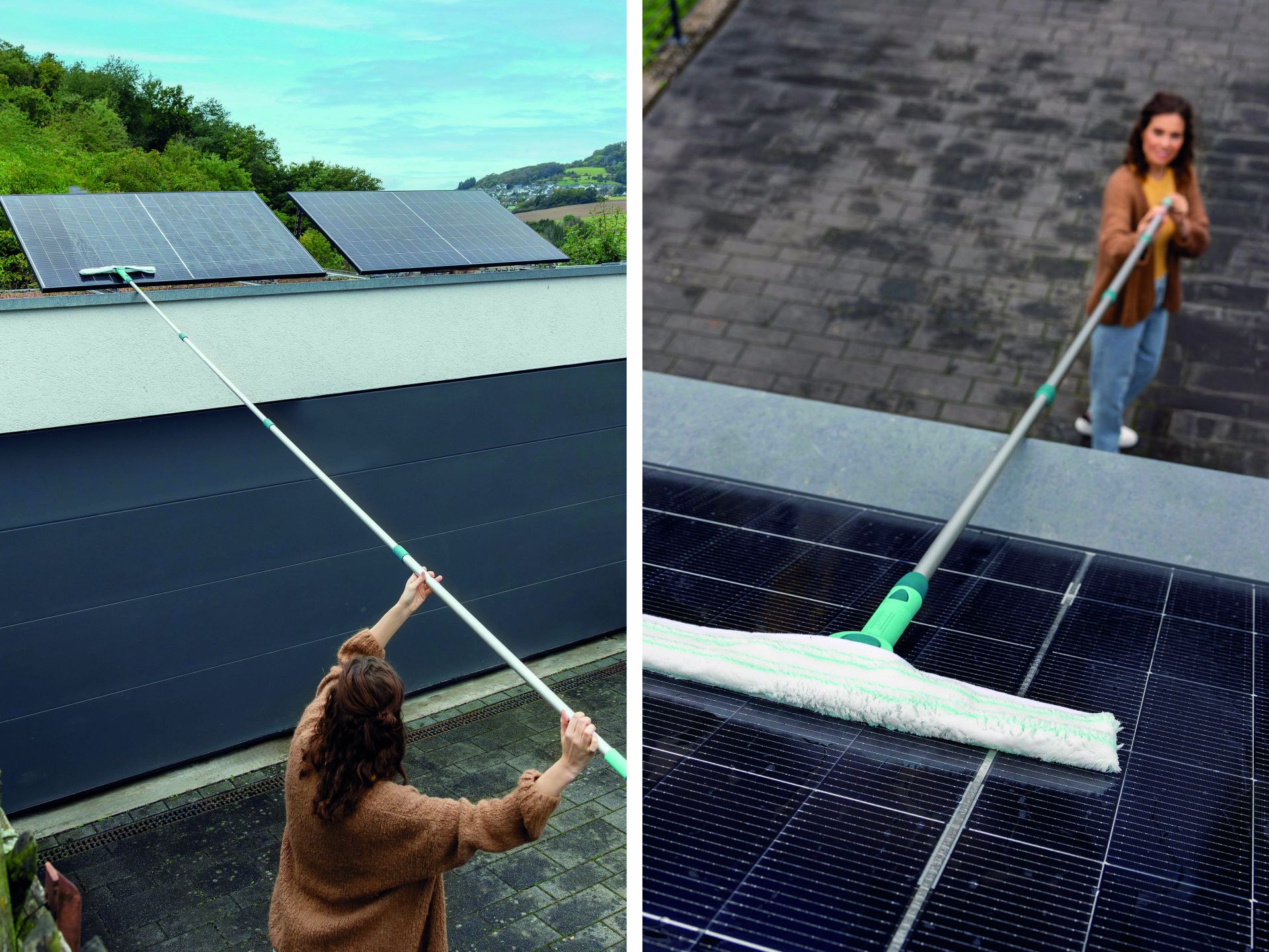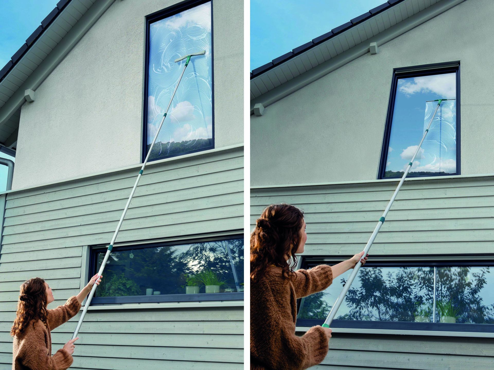 De set raamtrekker 2in1 XL Pro Reach Telescope 4m is je ideale hulp bij ramen wassen – ook voor zeer hoge en moeilijk bereikbare plekken. De complete set bestaat uit de 2in1 XL raamtrekker van 40 cm, die bijzonder goed in de hand ligt en met de standenknop handig schuin naar links en rechts versteld kan worden. Dat helpt fysieke overbelasting te voorkomen en zo maak je ook moeilijk toegankelijke plekken snel en gemakkelijk proper. Het siliconen wisserblad van de trekker zorgt voor een glashelder, streeploos resultaat. Door de handige afdruiprand wordt voorkomen dat de greep en je vingers nat worden. Het wisserblad is los te koop en is heel eenvoudig te vervangen, indien nodig. De meegeleverde aluminium telescoopsteel, met Leifheit Click-System, kan traploos versteld worden tot jouw ideale werkhoogte, van 146 tot 418 cm. Voor probleemloos reinigen van oppervlakken op hoogte, zoals serres, dakramen of de zonnepanelen. Bij deze set hoort ook de veelzijdige micro duo wisserovertrek, waarmee je de raamtrekker in een handomdraai verandert in een inwasser. Met de wisserovertrek met twee soorten vezels maak je ramen en andere gladde oppervlakken moeiteloos grondig proper. De grovere vezels maken ook hardnekkig vuil zoals kleverige pollen of vogelpoep los en de fijne microvezels nemen het op. Deze set bevat alles wat je nodig hebt voor ramen lappen, voor een stralend resultaat. Het siliconen wisserblad is los te koop en kan heel gemakkelijk vervangen worden, als dat nodig is. 3 verschillende wisserstanden, instelbaar met handige knop. Siliconen wisserblad maat XL 40 cm en afdruiprand. Traploos verstelbare alu telescoopsteel voor de ideale werklengte, 146-418 cm. Micro duo inwashoes met 2 soorten vezels voor verwijderen van hardnekkig vuil. Handgreep met ergonomische structuur.