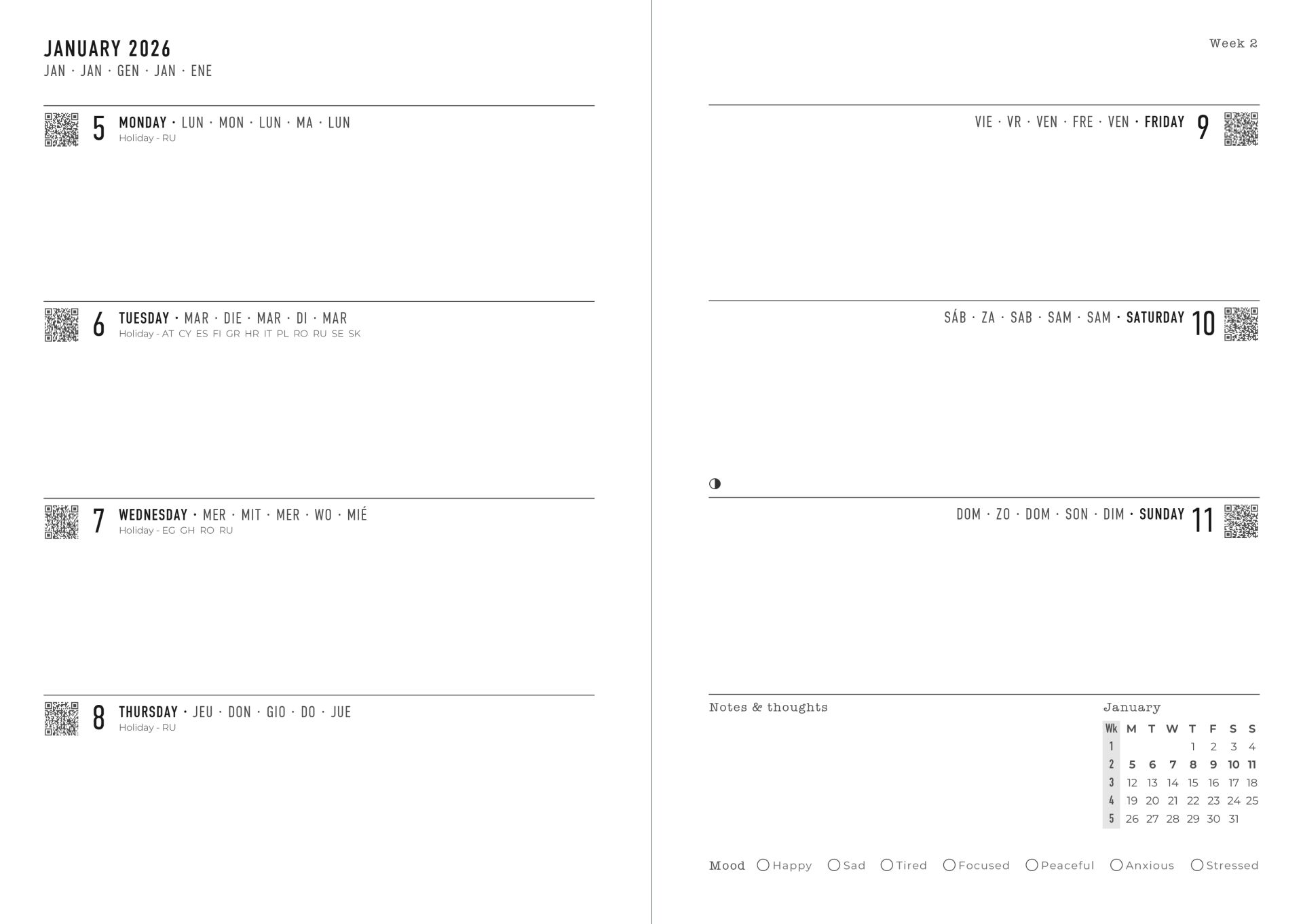 Letts Agenda 2026 Gradient A5 - 1week/2pag Internationaal assorti - per stuk