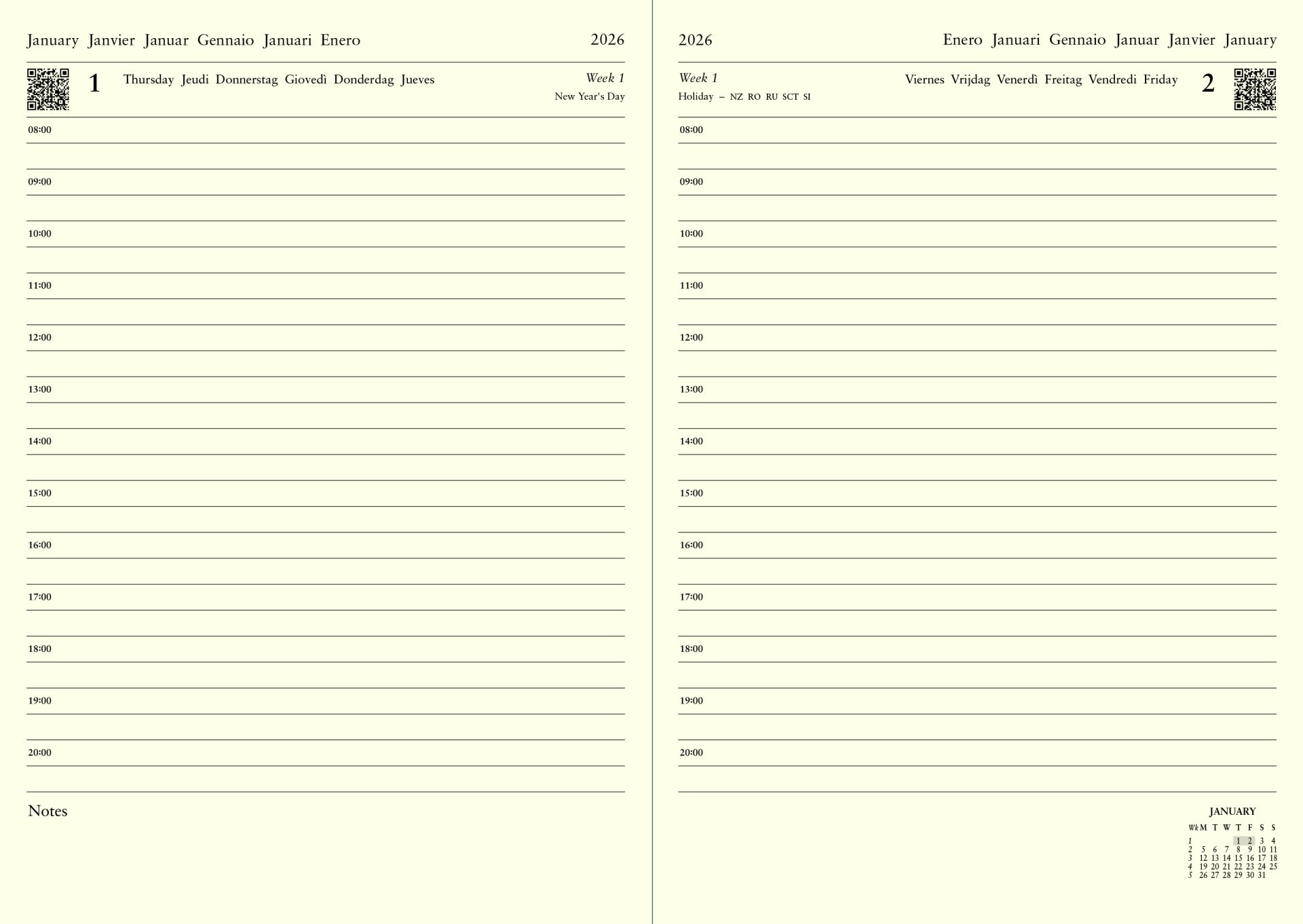 Letts Agenda 2026 Lecassa A6+ 1dag/pag+Notes Internationaal assorti - per stuk
