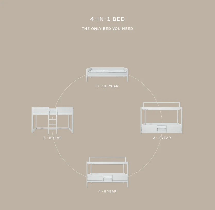 Lifetime Original Bed Montessori 4in1 met Dakframe en Rolbodem zonder Stof 90x200 cm Wit Gelakt