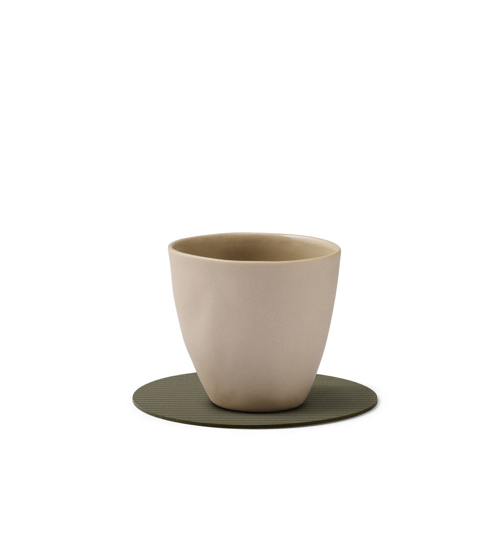 LindDNA Glasonderzetter Corduroy Circle Army Green 10cm - Recycled Leder