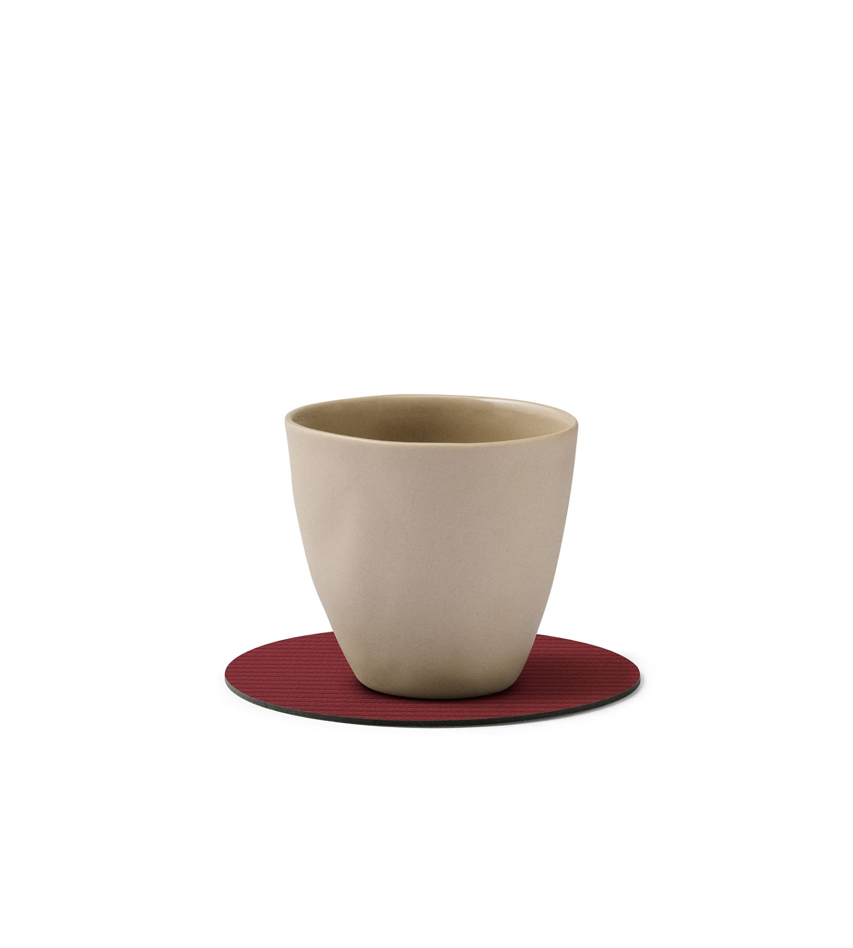 LindDNA Glasonderzetter Corduroy Circle Red 10cm - Recycled Leder