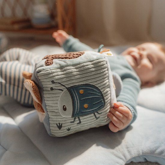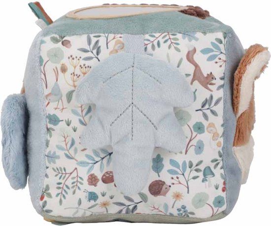 Ga op avontuur in het bos van Forest Friends waar de bosvriendjes samen wonen en spelen. Deze superzachte activiteitenkubus in vrolijke tinten zal de nieuwsgierigheid van jouw kleintje zeker wekken. Elke zijde is voorzien van een andere activiteit met verschillende texturen en vormen die helpen bij het ontwikkelen van de zintuigen en natuurlijk voor eindeloos veel vermaak zorgen. De kubus kan vastgepakt en gedraaid worden en beschikt over een spiegeltje voor zelfontdekking.