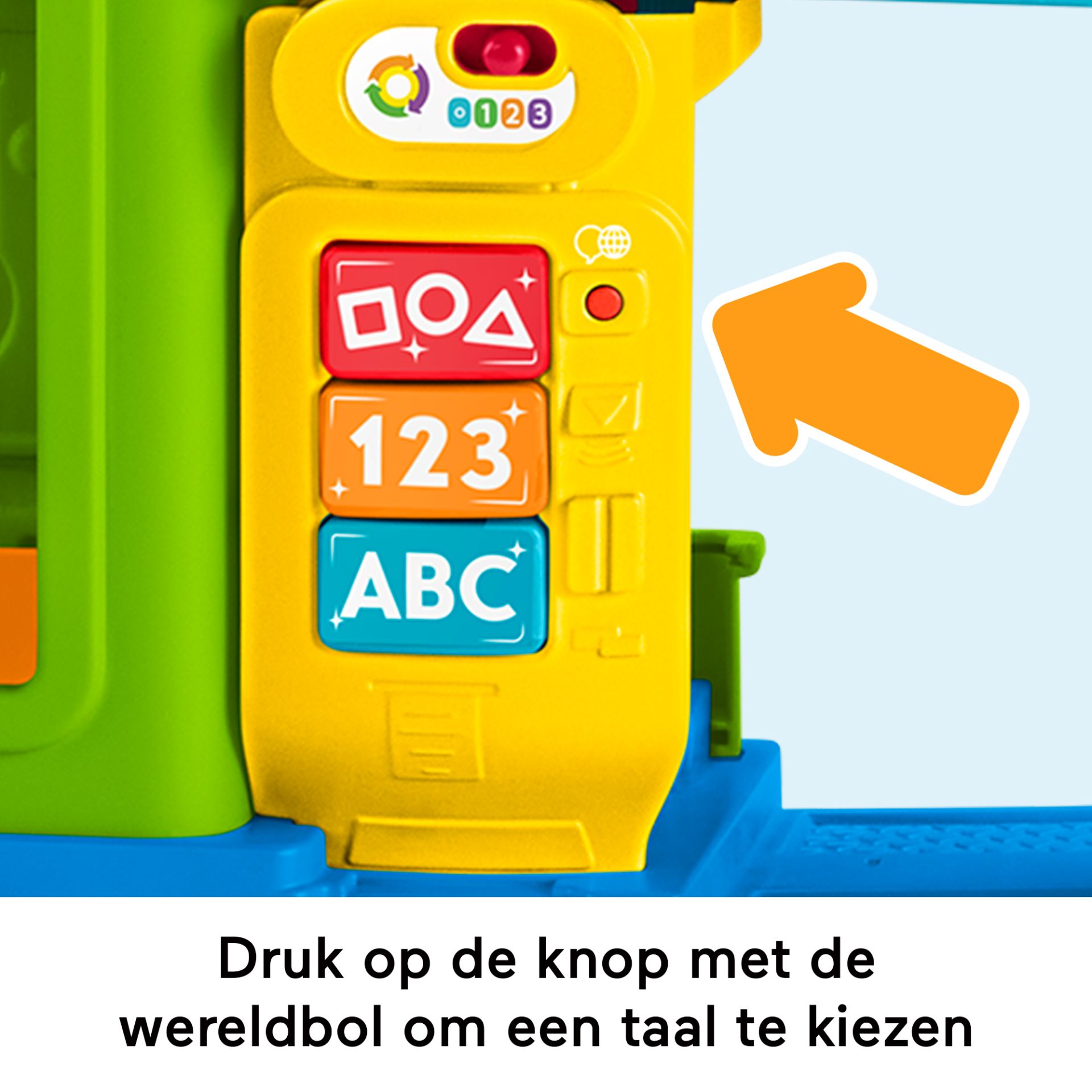 3 educatieve niveaus met meer dan 60 liedjes, geluiden en zinnetjes, waarin kleuren, het alfabet, vormen en de dagelijkse gang van zaken aan de orde komen. Kies een taal met de knop met een wereldbol: Nederlands, Frans, Duits, Italiaans of Engels