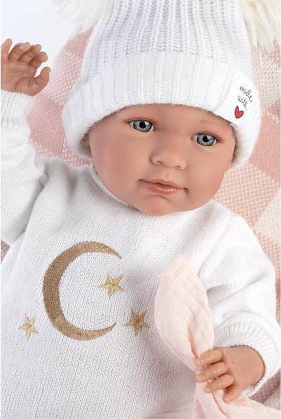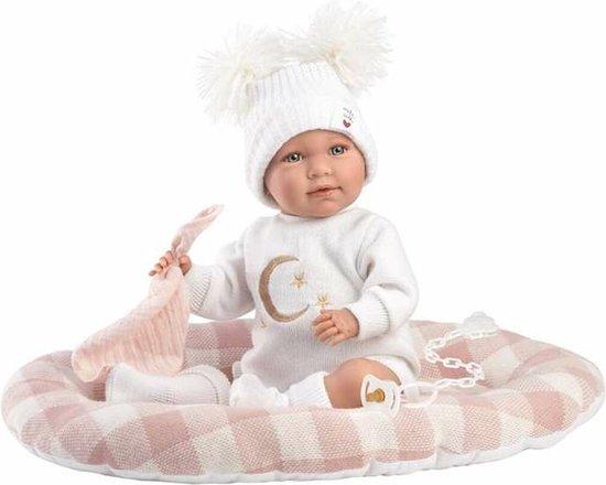 Llorens Mimi Llorona Bordado Luna 40 cm Lacht en Weent met draagmand roze