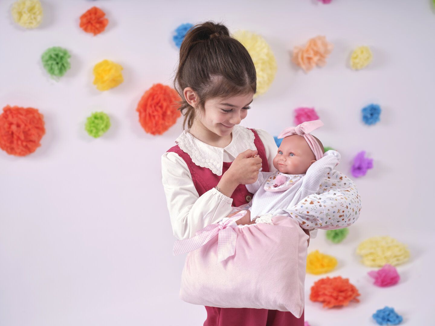 Llorens Tina Pasgeboren met zachte huid 40 cm, in Roze draagzak