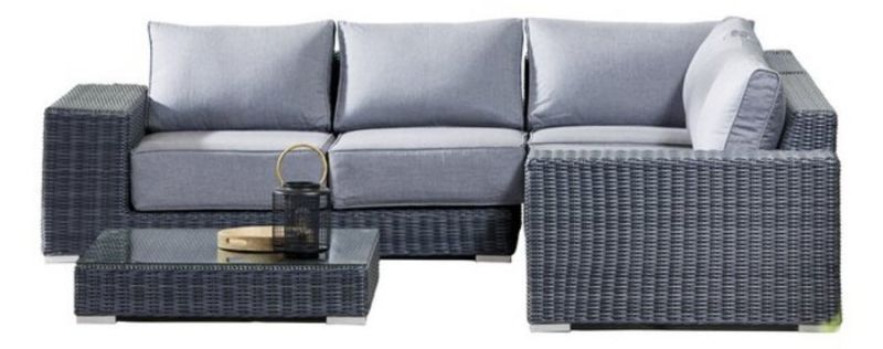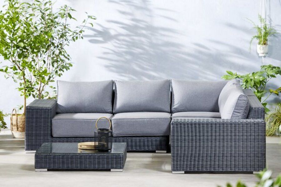 Loungeset Panama Wicker Antraciet Hoekzetel + Tafel met Glazen Blad
