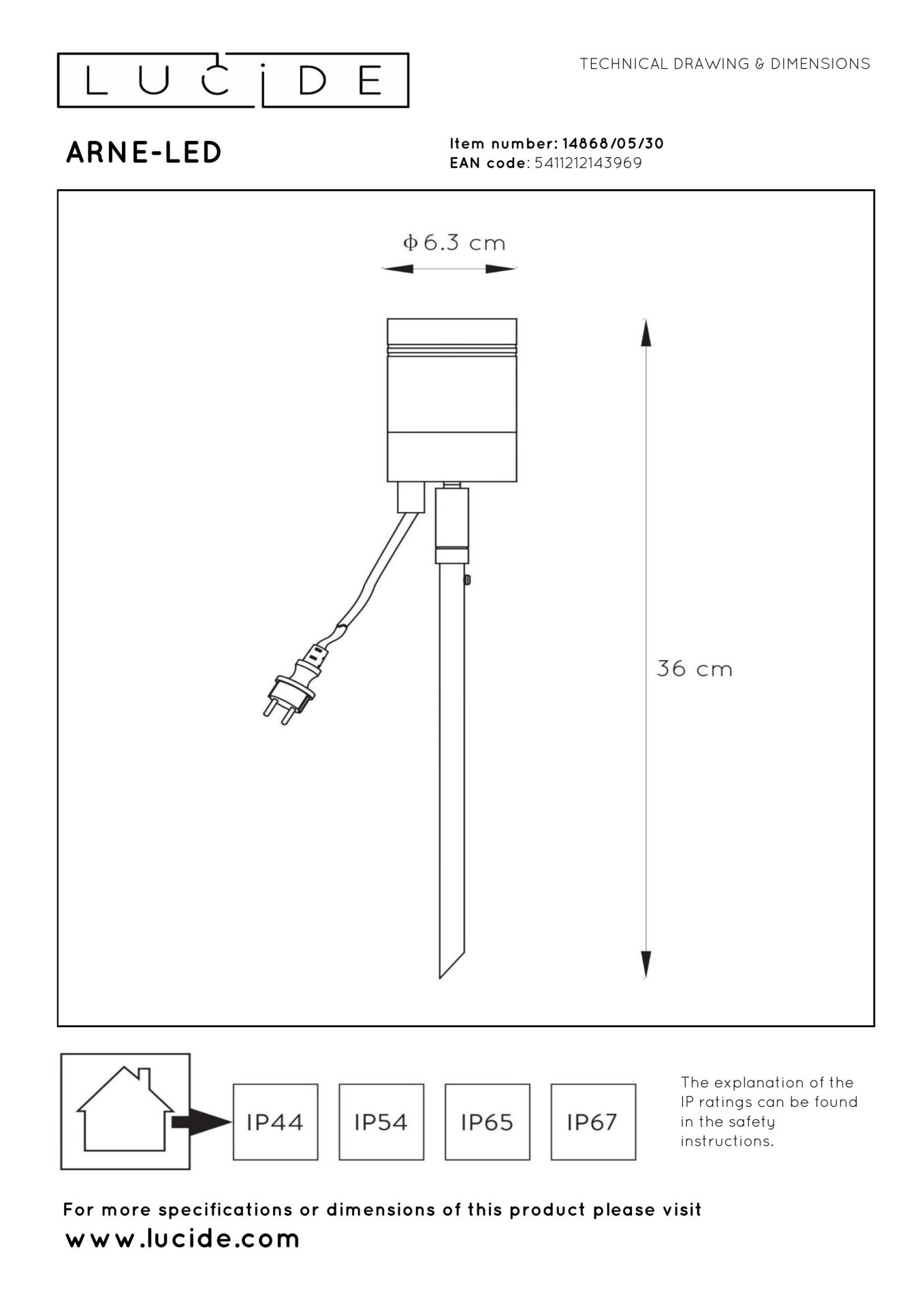 Lucide Arne Tuinspot Buiten Zwart 1x5w GU10 LED