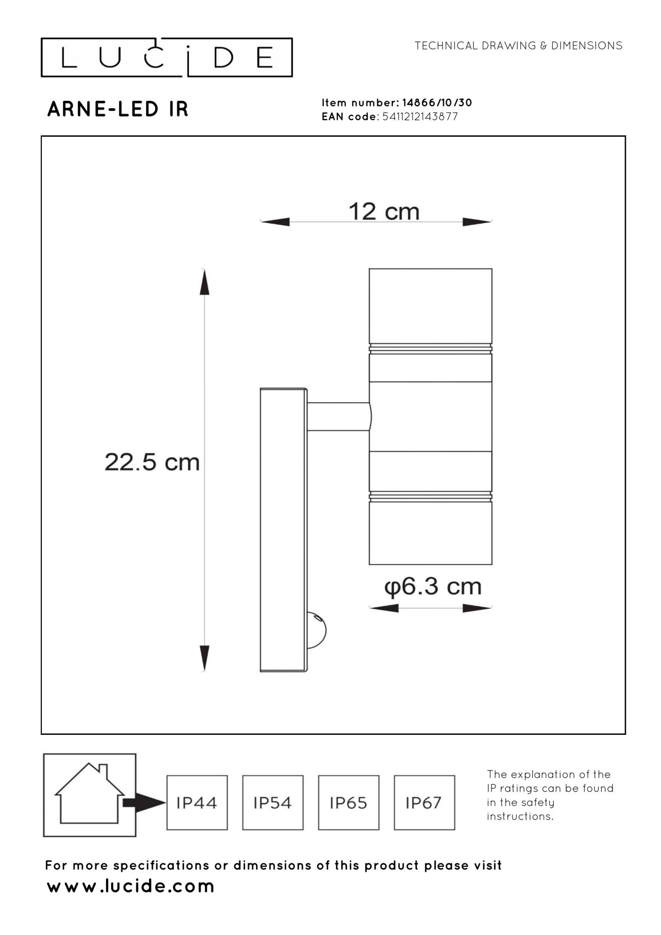 Lucide Arne Wandspot buiten Zwart 2x5w GU10 met sensor