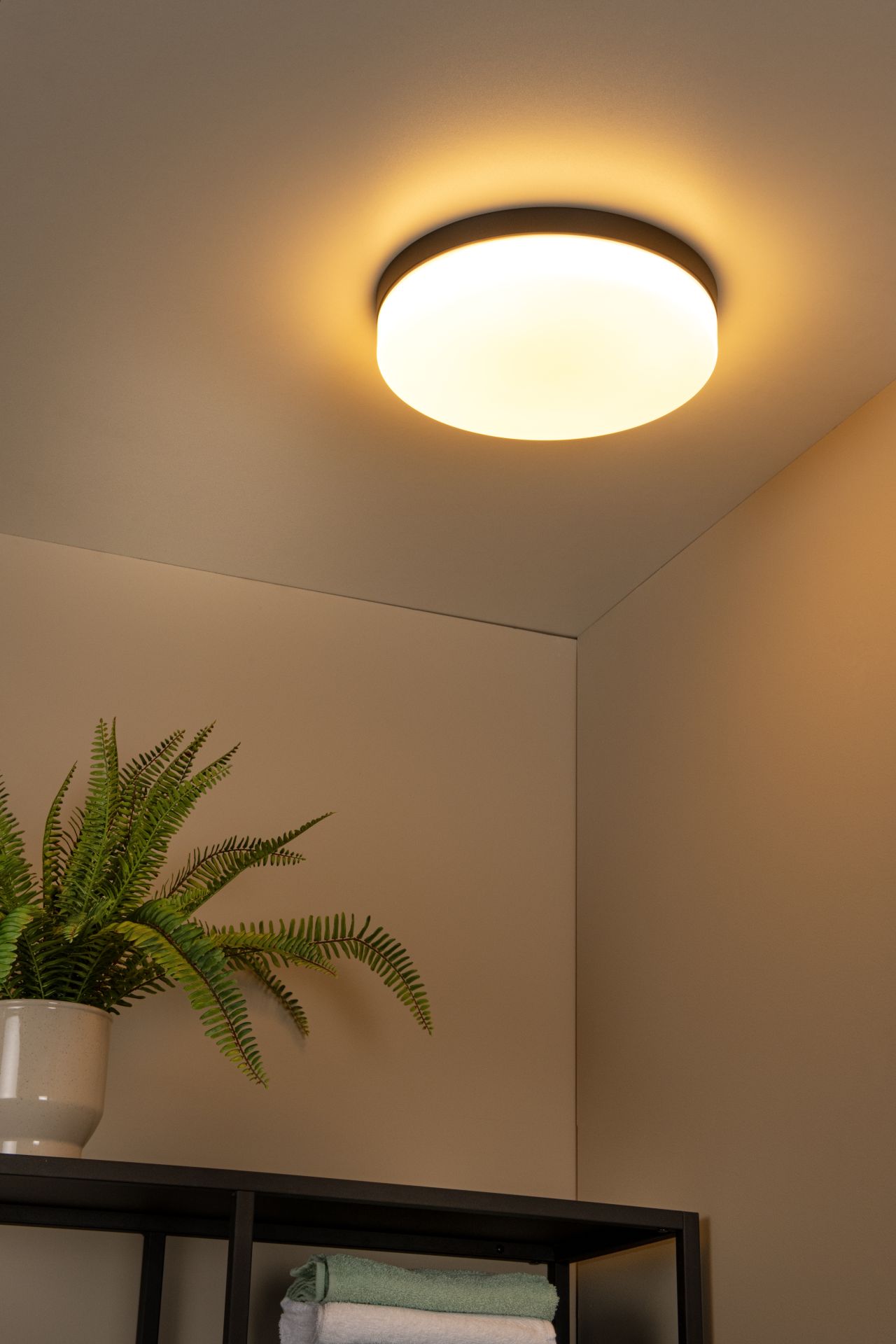 Lucide Biskit Plafondlamp Badkamer LED Zwart 1x12W 2700K IP44 34.5cm
