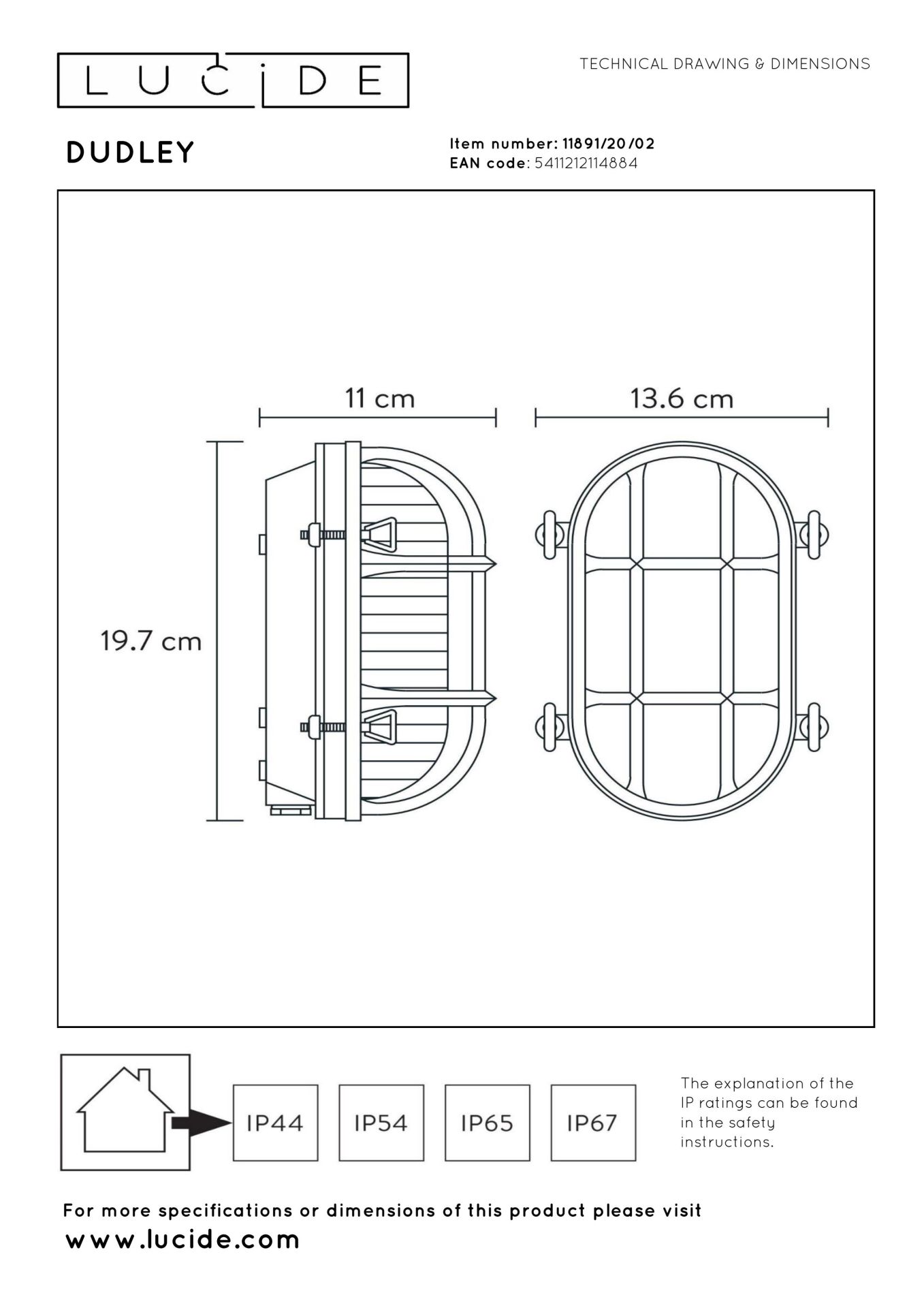 Lucide Dudley Wandlamp Mat Goud IP65 Buitenverlichting - E27 socket - Ovaal