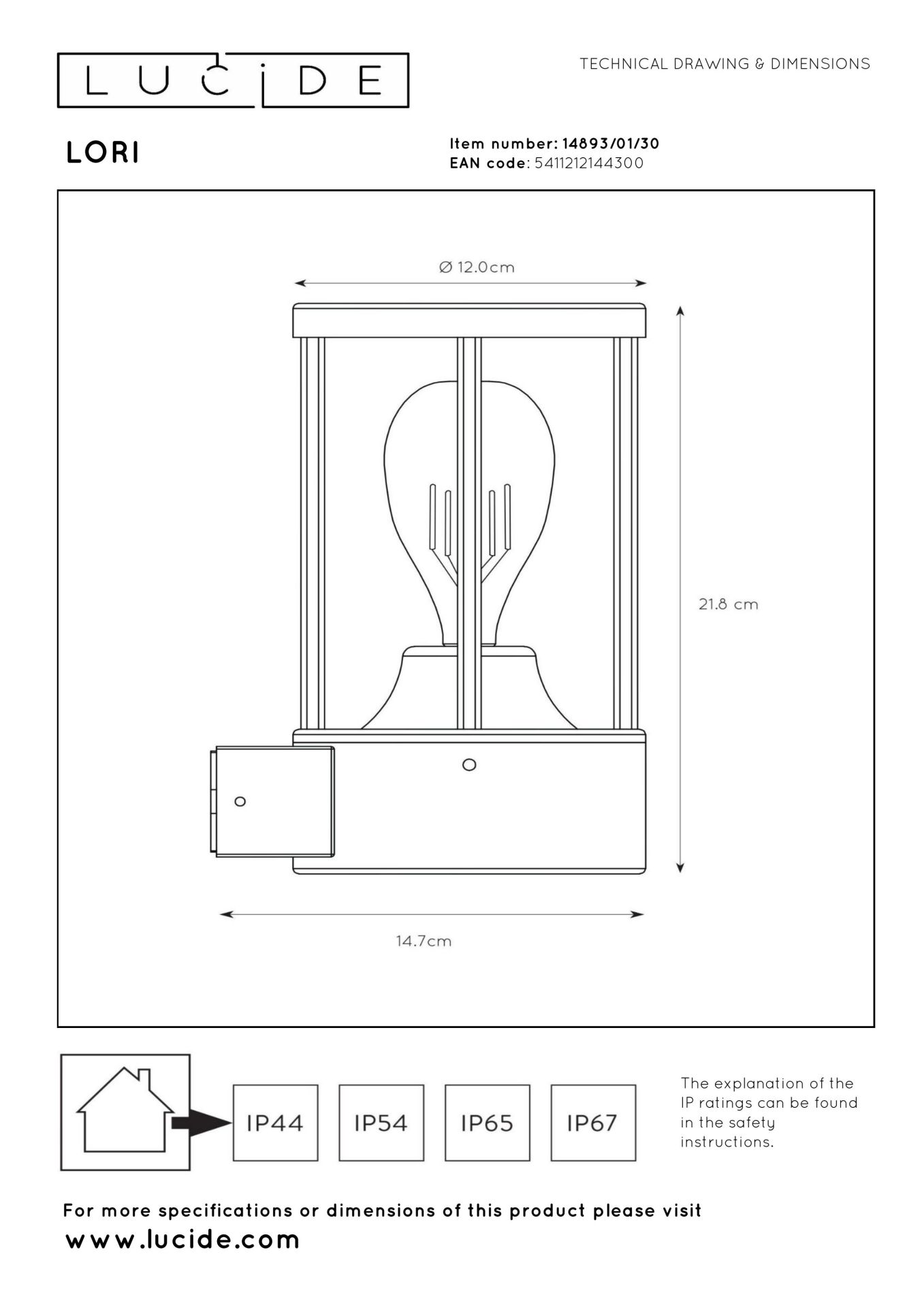Lucide Lori Wandlamp buiten Antraciet 1x15w E27