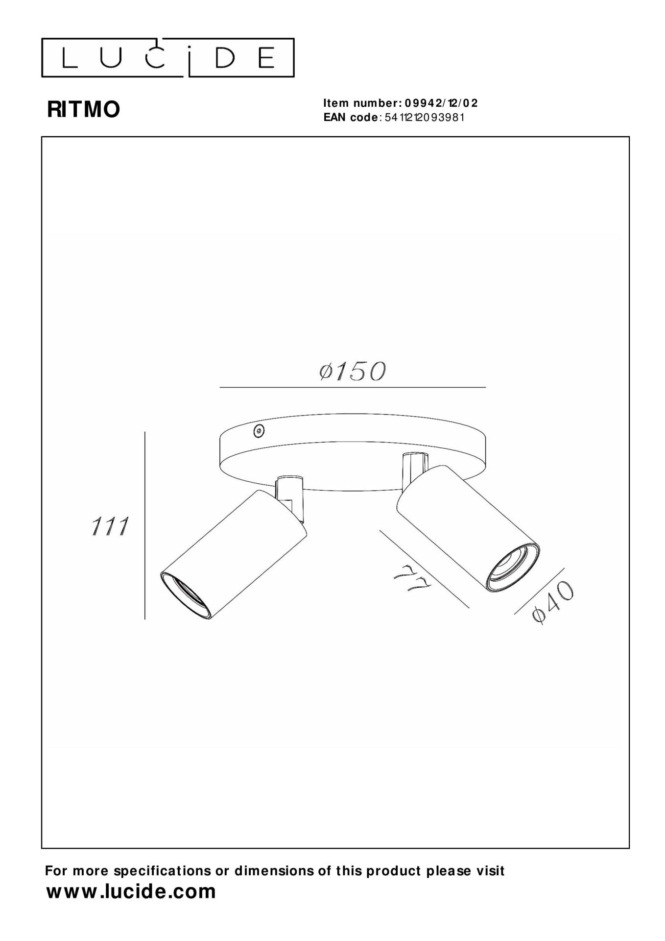 Lucide Ritmo Plafondspot Mat Goud/Messing 2x Mini GU10 (MR11) 35W