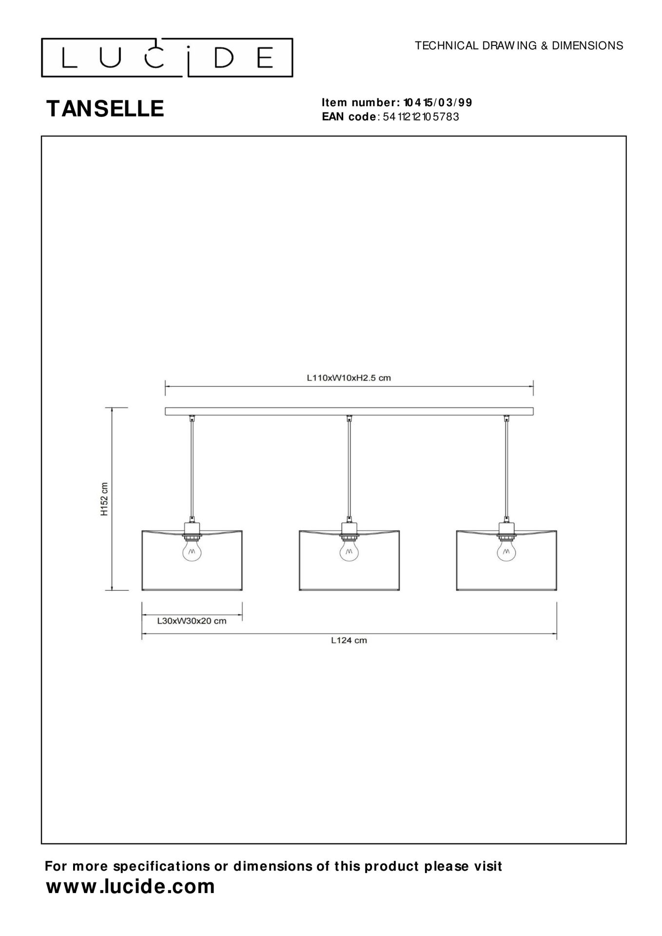 - Verbruik: 3x60W / 230V / Dimbaar (excl.)