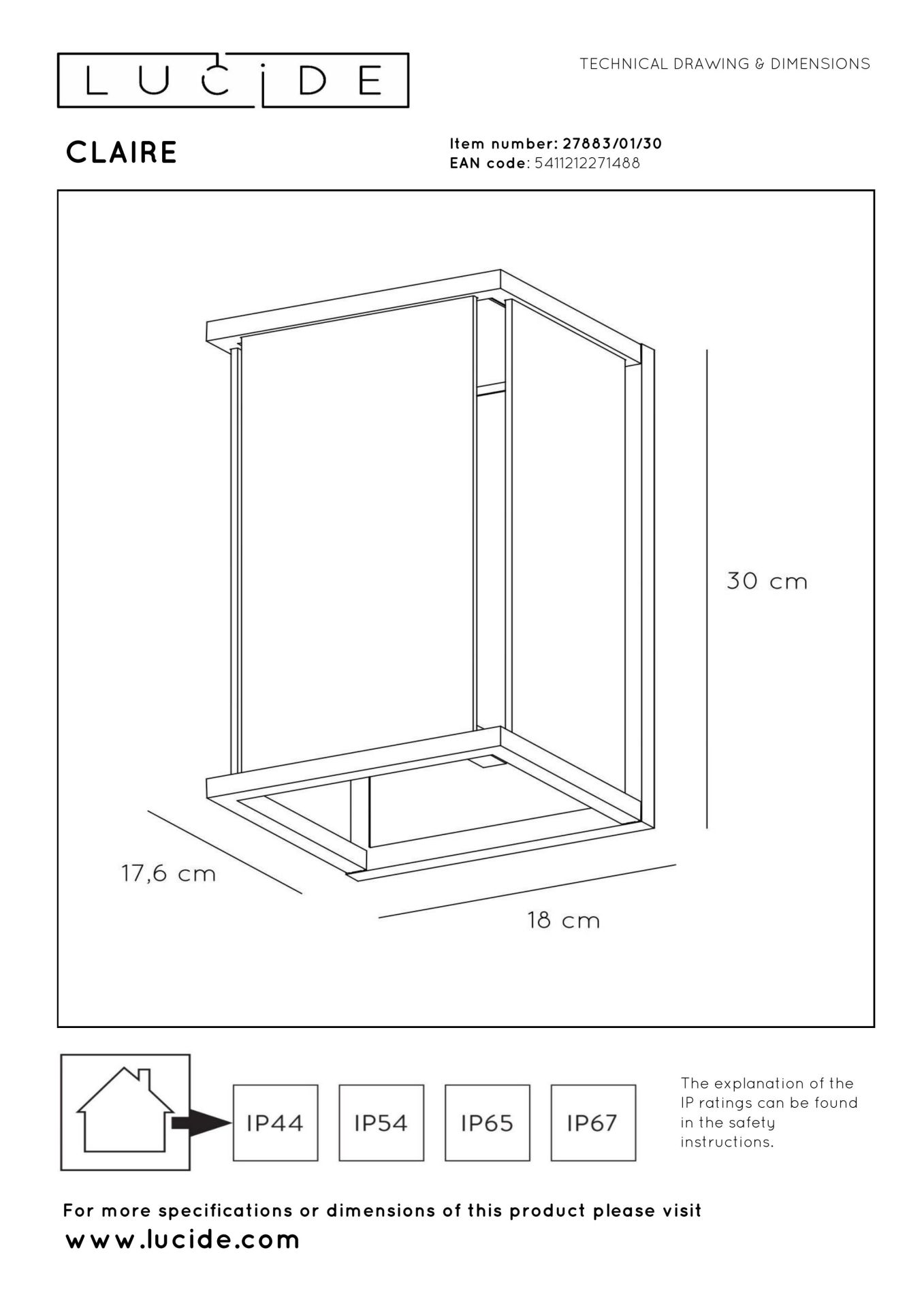 Lucide Wandlicht Outdoor Claire Zwart 15w E27