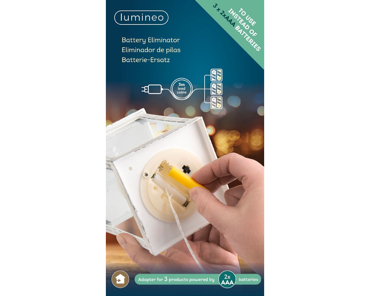 Lumineo Batterijvervanger 3V 2x AAA voor 3 Toestellen - 2.55m Kabel Wit