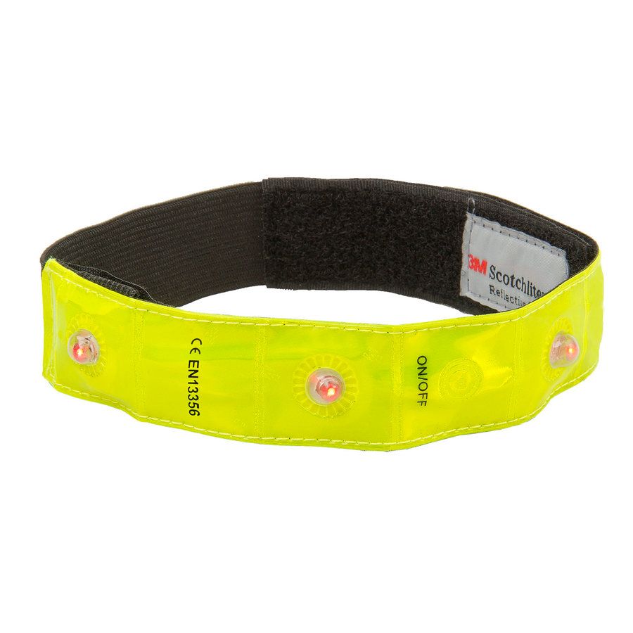 M-Wave Wrapflash Reflecterende armband Fluogeel met 4 rode LED's