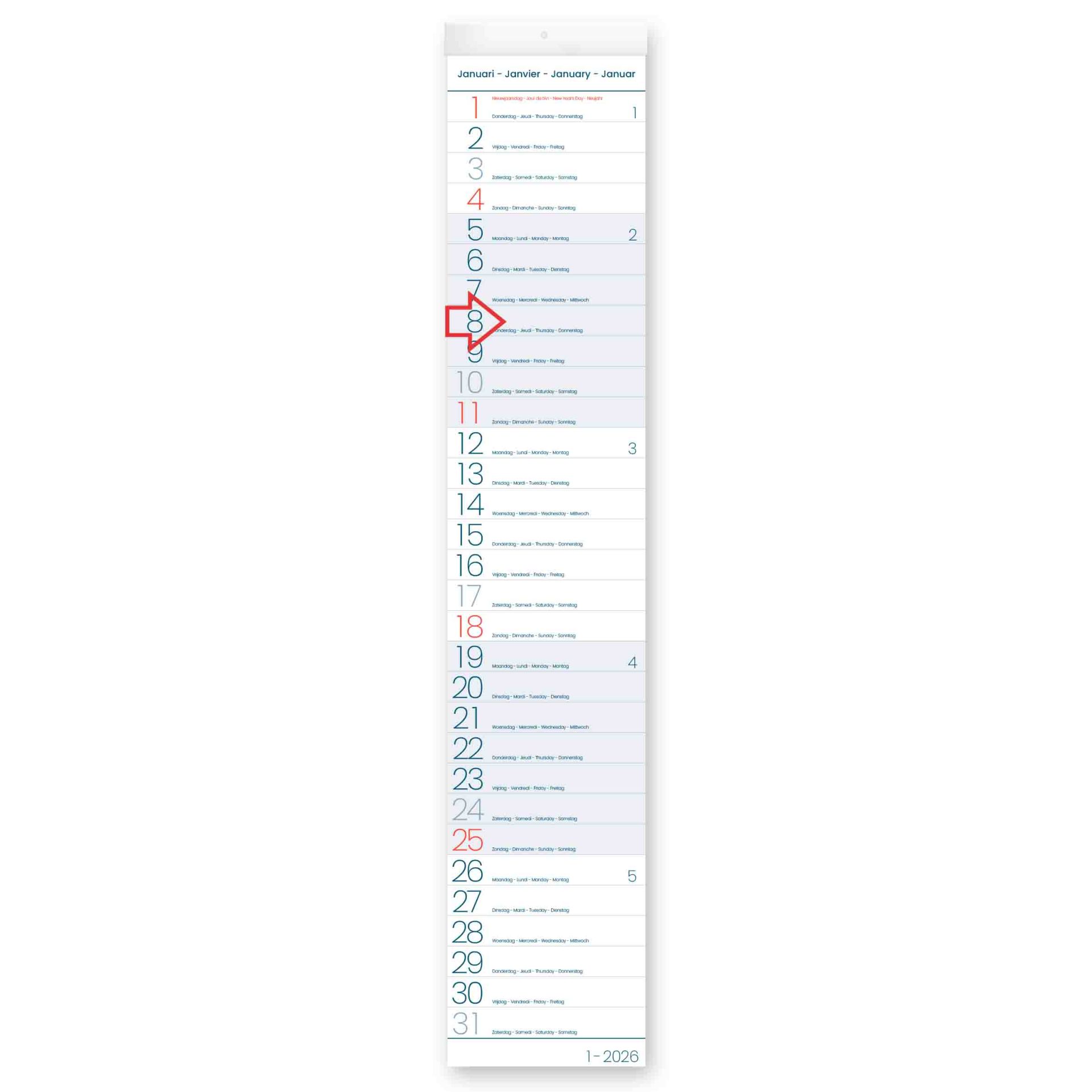Maandkalender 2026 Wallplanner 11x56.5 cm