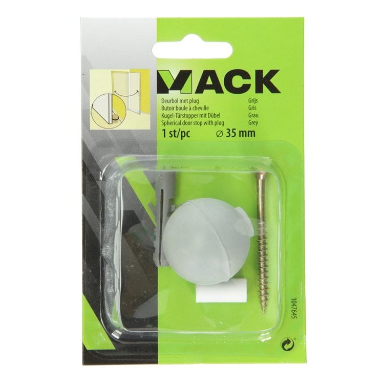 Mack Deurstop Bol Grijs + Plug 35 mm