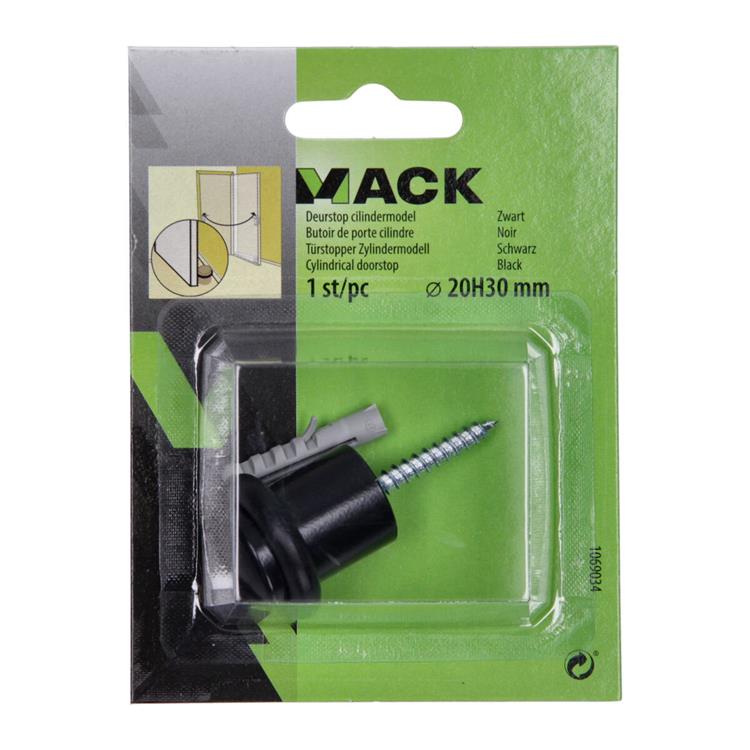 Mack Deurstop Cilinder Zwart 20x30 mm