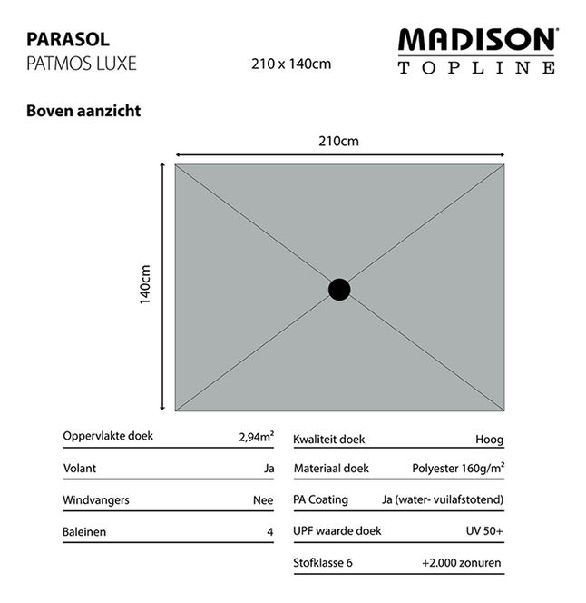 Madison Parasol Alu Patmos 210x140 cm Rechthoek met Flappen Taupe