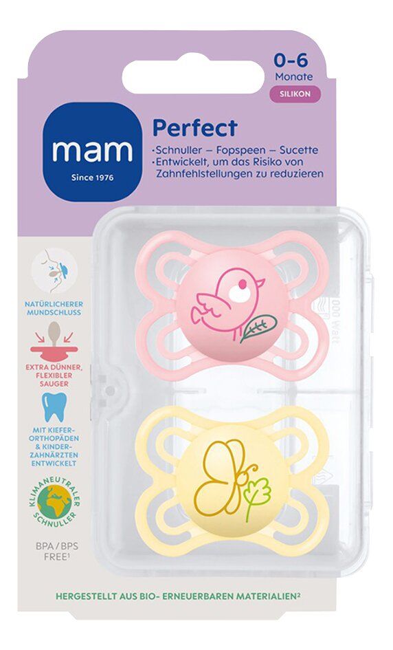Mam Fopspeen Perfect Start Silicone Roze-Geel 0-6 maand - 2 stuks