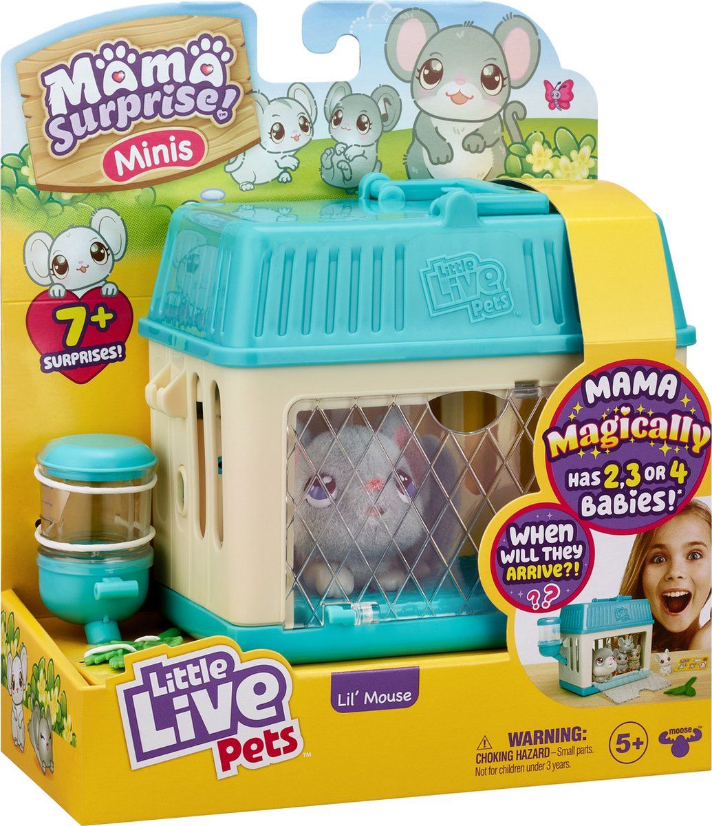 Mama Surprise - Minis, lil Mouse blauw 2,3 of 4 baby's, compleet met kooi,