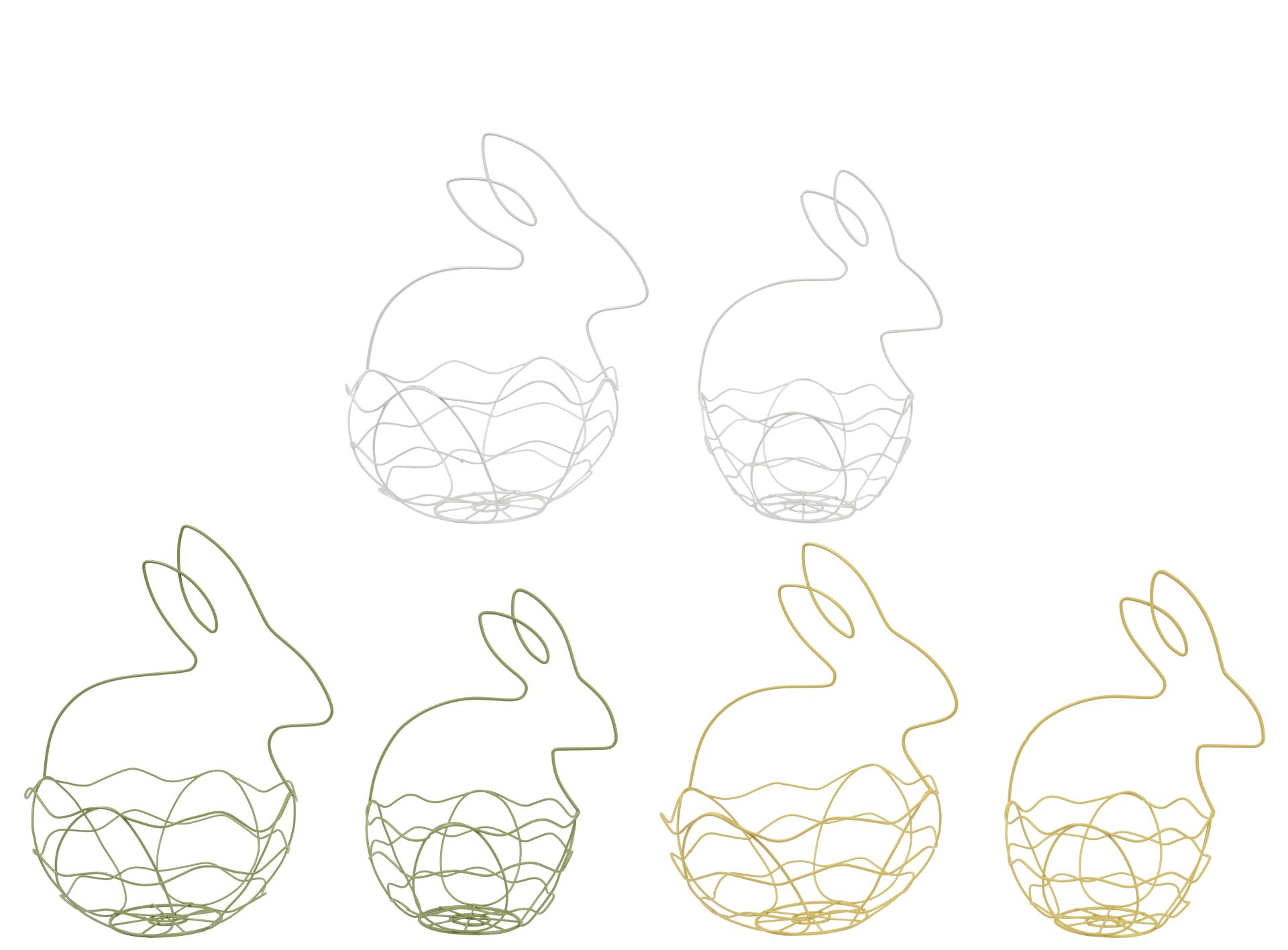 Mand IJzer Konijn Geel/Groen/Wit 24.5x21.5x31 cm - assorti - prijs per stuk