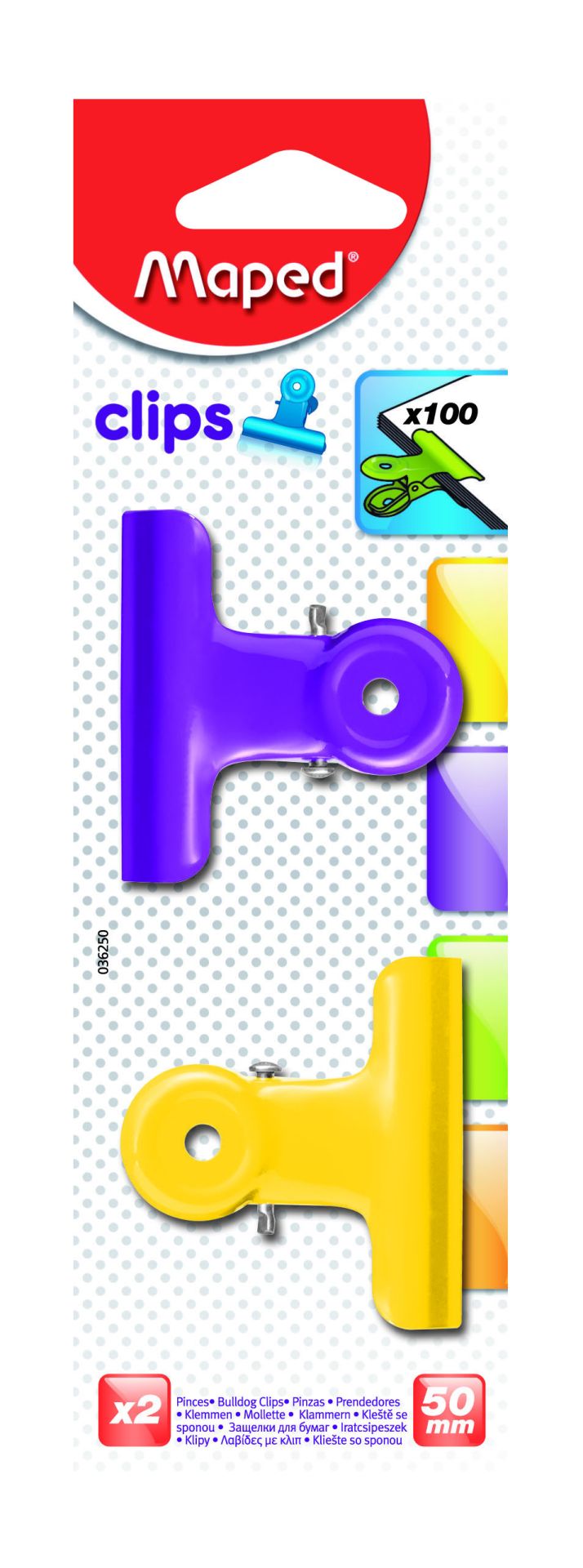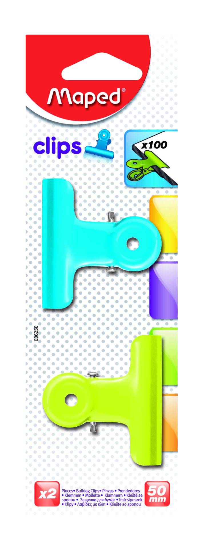 Maped Papierklemmen Bulldog 50 mm 2 stuks - Blister - assorti - Prijs per Stuk
