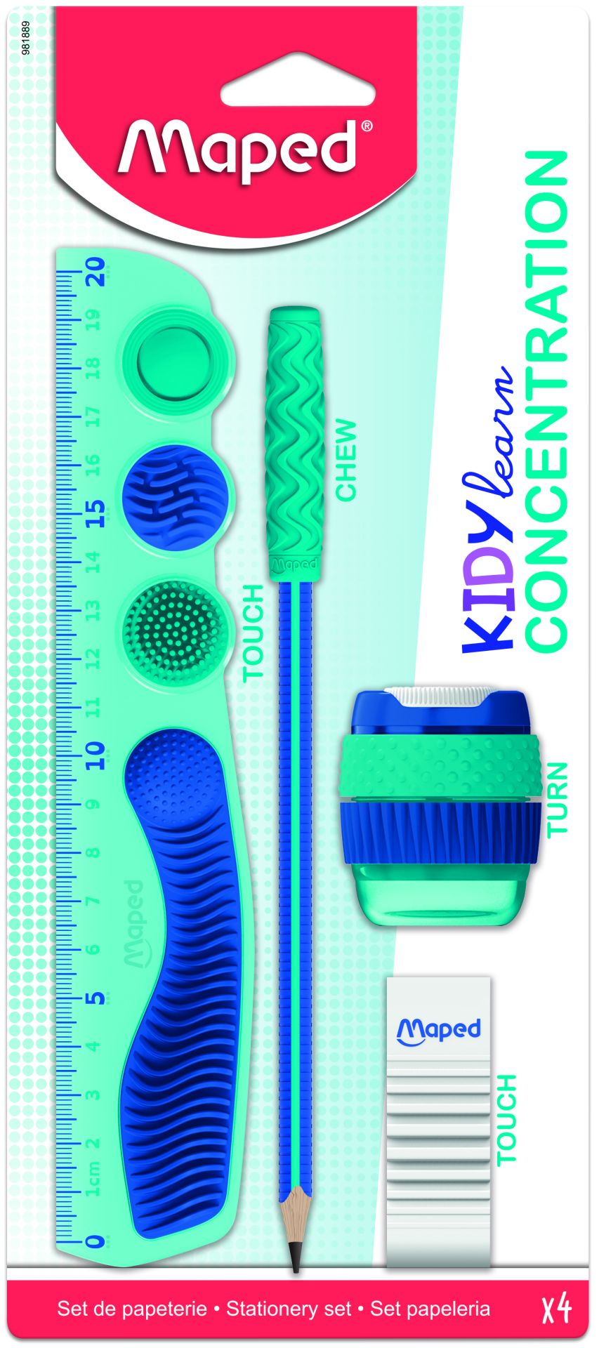 Maped Schrijfset Kidy Learn Concentration Lat-Potlood-Slijper-Gum - Blister