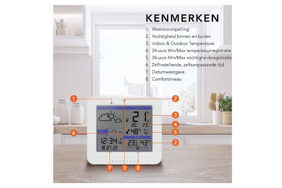 Marathon Weerstation Paris Wit Draadloos Thermo-Hygrosensor - Comfort Indicatie