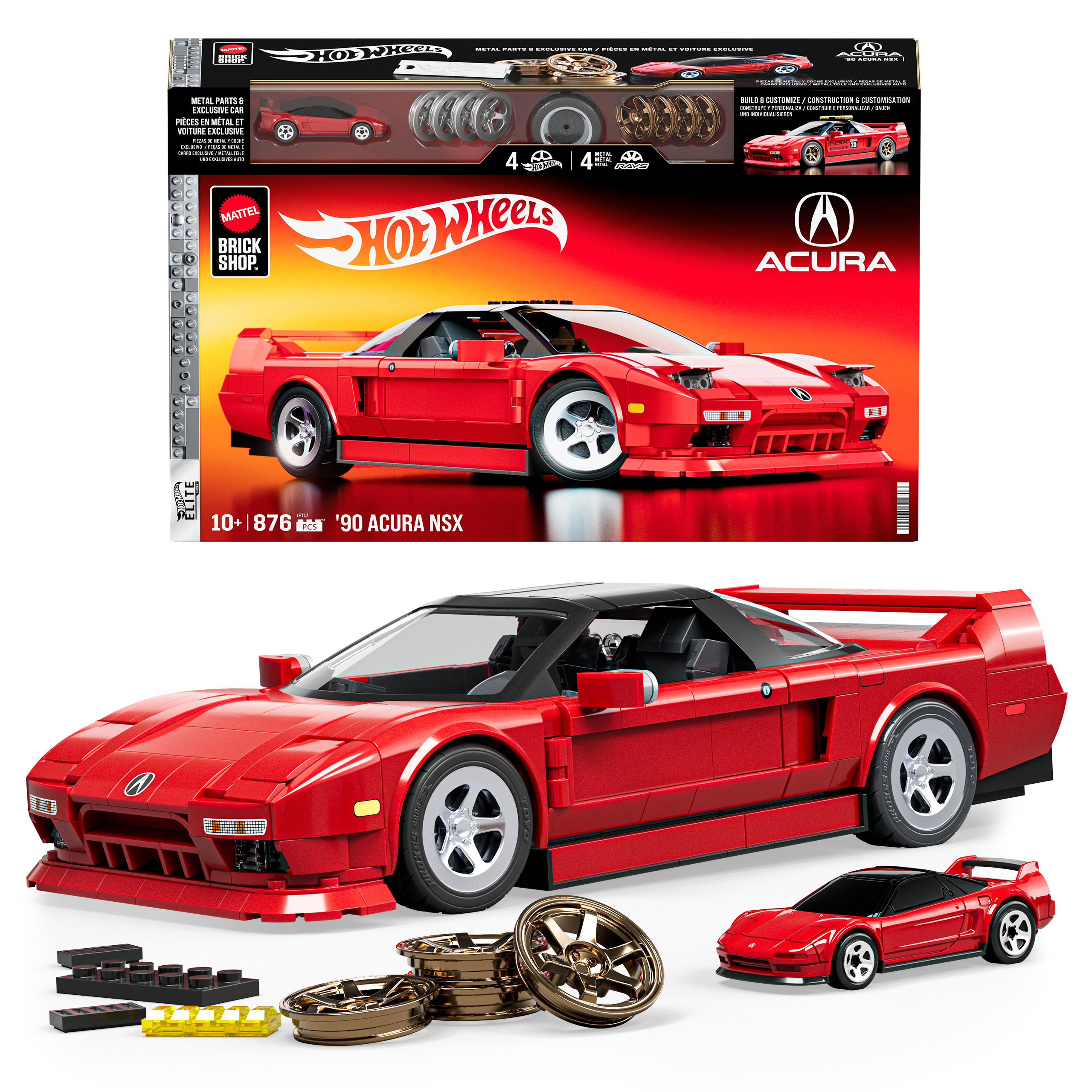 Bouw aan autohistorie met de Acura NSX (schaal 1:32) van Mattel Brick Shop. Deze gedetailleerde en authentieke set bevat extra onderdelen die je naar eigen inzicht kunt gebruiken, een stickervel om je creativiteit de vrije loop te laten, metalen wieldoppen, een merkplaatje en een exclusieve bijpassende metalen auto. Leuk om te verzamelen en tentoon te stellen. Deze set kan worden gebouwd als de Honda NSX of de Acura NSX, met verwisselbare kentekenplaten en verschillende bestuurderskanten. Verzamel alle auto's uit de Elite Serie en maak je klaar om te racen.
